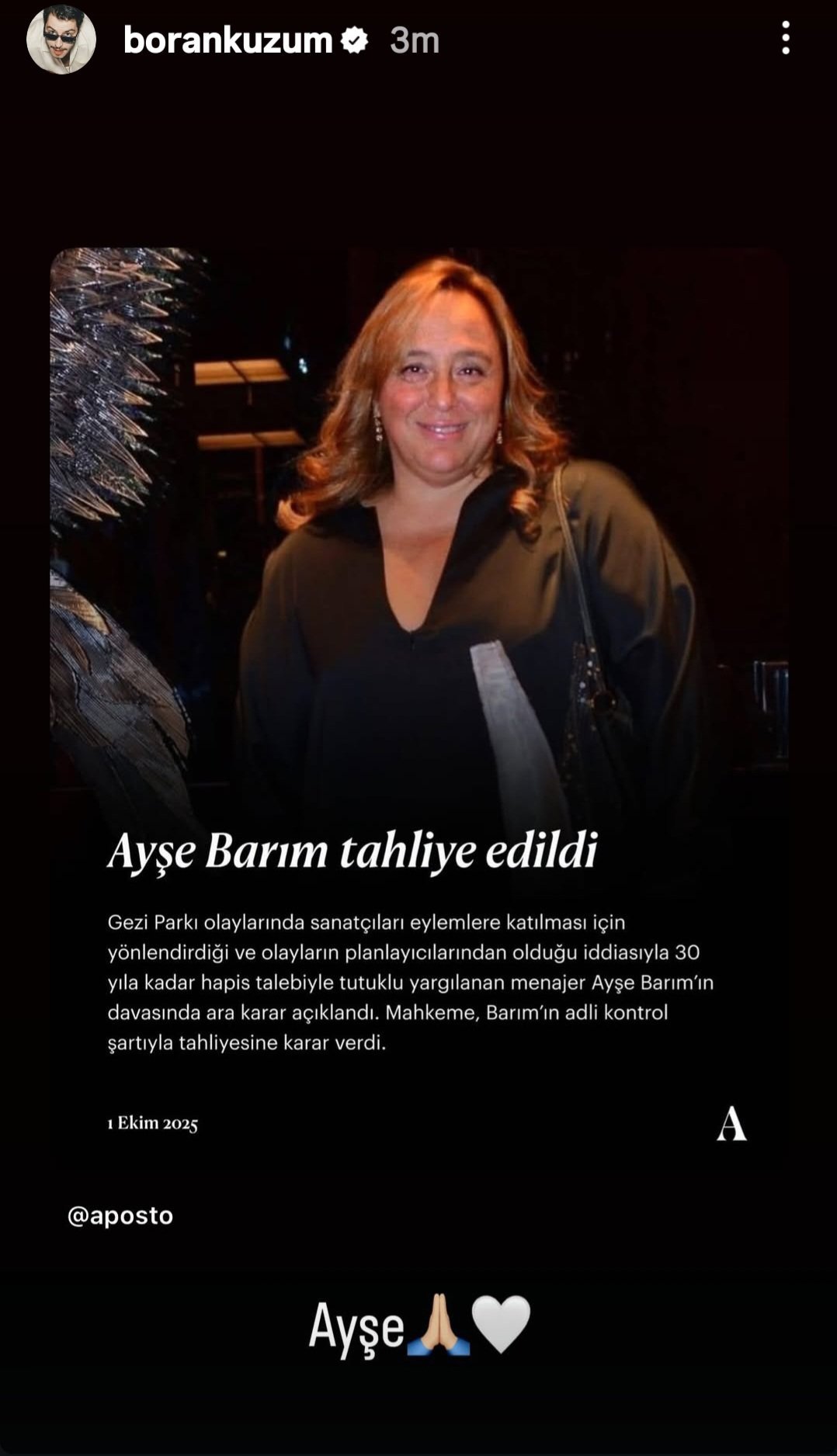 "Главната прокуратура на Истанбул възрази срещу освобождаването на Айше Баръм. Съдът, който одобри освобождаването, отхвърли възражението, заявявайки: "Решението ми е валидно“. Възражението на прокурора ще бъде разгледано от по-висша инстанция."