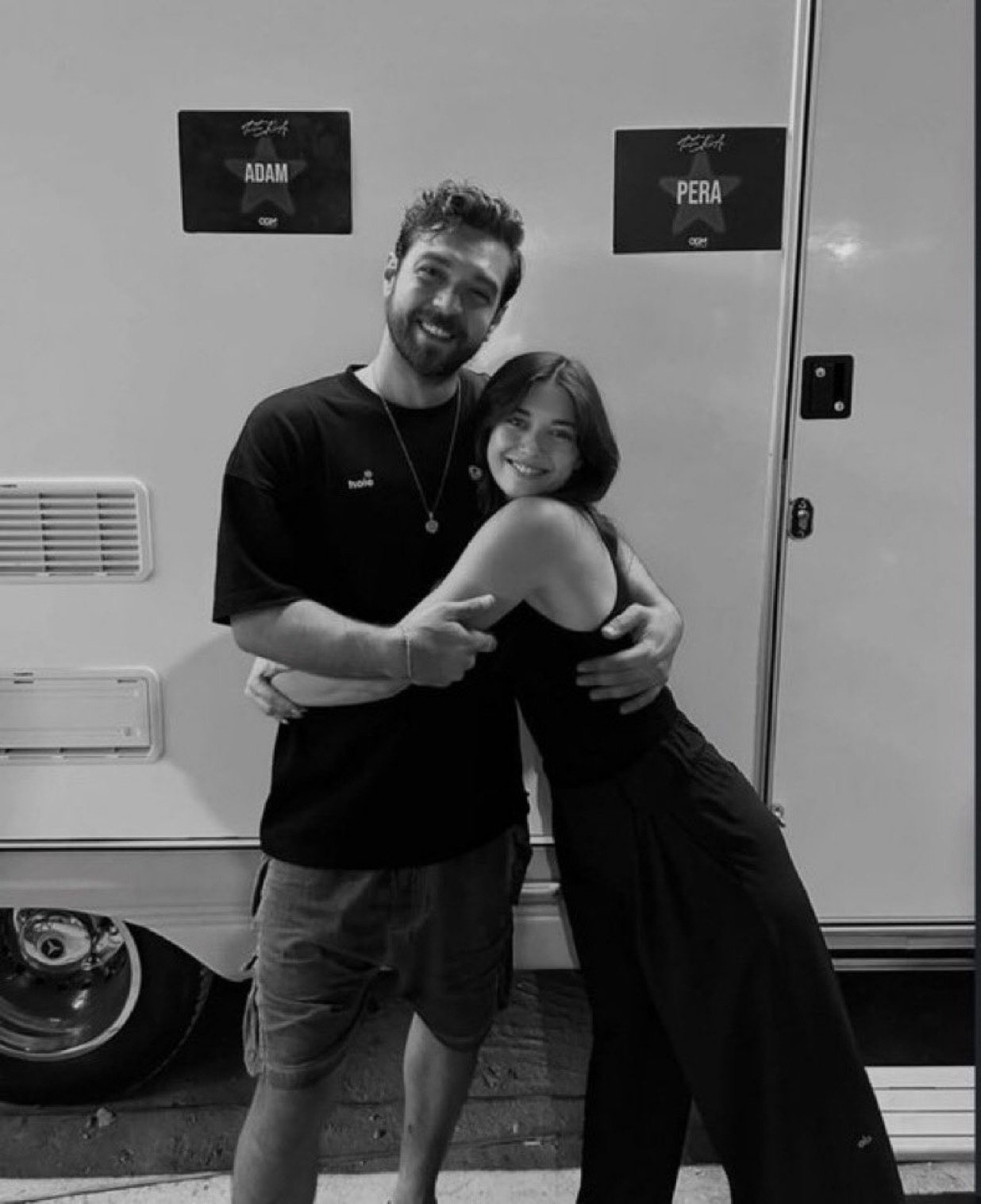 Фуркан с Афра Сарачоглу зад кадър на сериала "Пери".