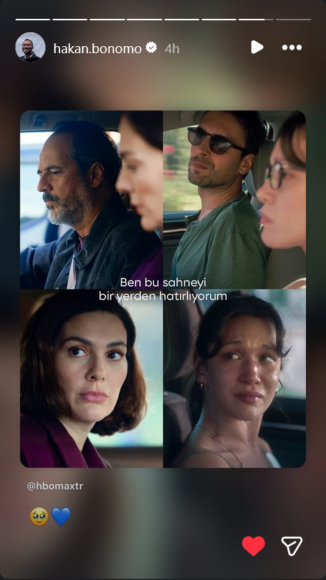 Сценаристът Хакан Бономо също получава отзиви за сериала, в един звучи друга песен на Яшар. 2. Спомням си тази сцена отнякъде. HBO Max Turkey са публикували снимката в акаунта си и текст: "Да видим дали старите рани ще се отворят отново. 💔"