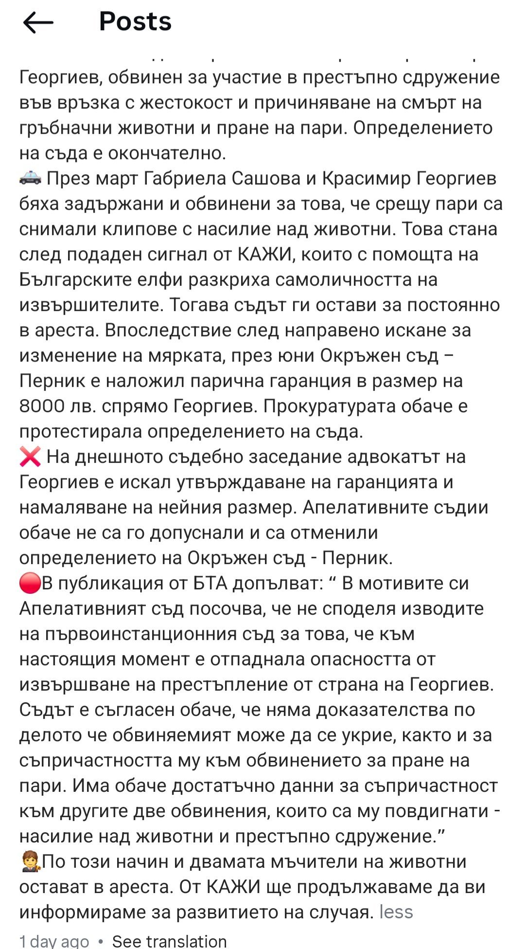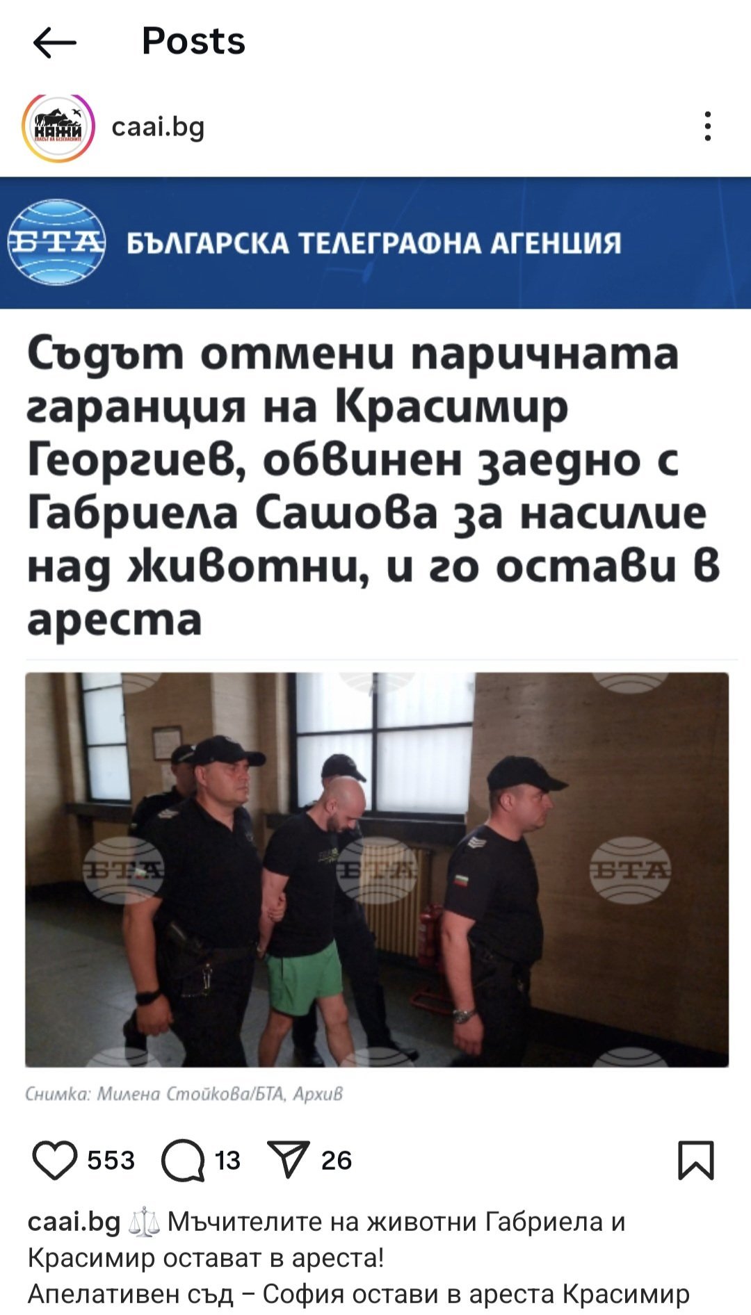 Ако говорите за Красимир Георгиев, той не е на свобода. Ето публикация на КАЖИ в Инстаграм от вчера.