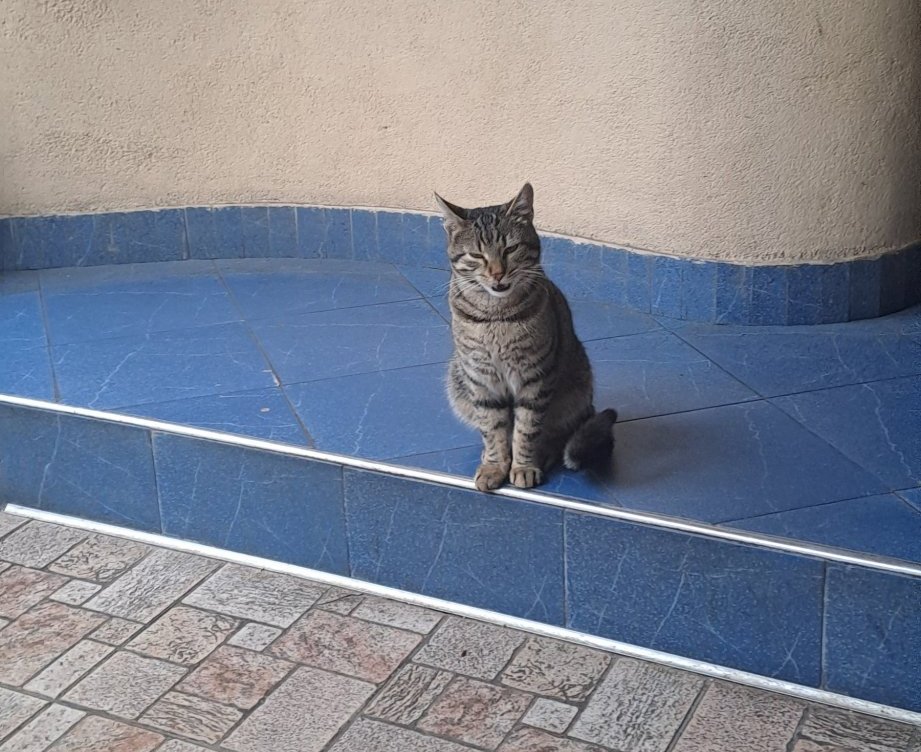Да ви покажа един котан, снимах го в кафенето, където спряхме по време на екскурзията. Много гальовен и гушлив. Бяха го прибрали вътре, защото валеше дъжд