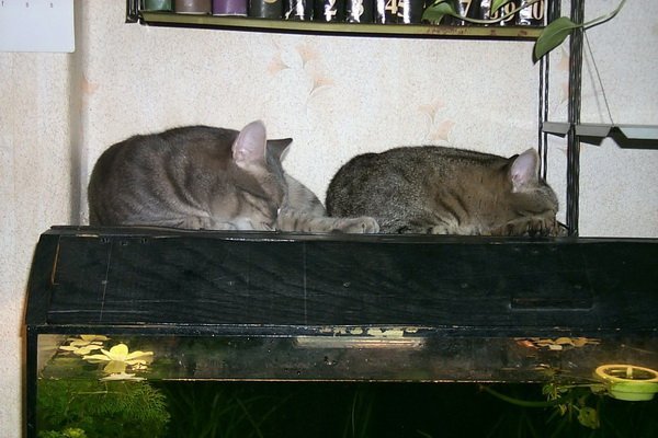 Едно време и ние имахме аквариум. Мъжът ми сам беше направил капак (преди 25 и повече години повечето неща бяха самоделни). Под капака имаше обикновени крушки, които доста го затопляха. Затова Мъро и Мацо непрекъснато спяха отгоре. Joy Хубаво, че нямаше инциденти като на Блеки. Joy
