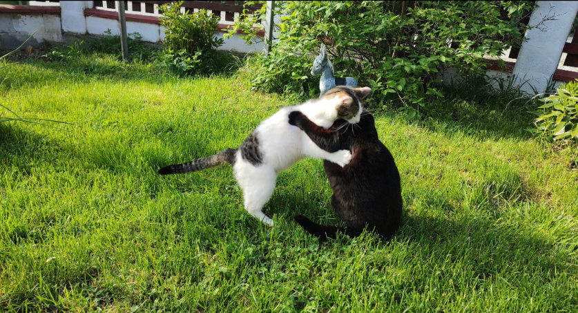 3 месеца след кастрация, Лео видимо се кротна, вероятно и защото прекарва повече време вън, играе, ловува, спи и вечер всички са у дома само да спят. Приет е напълно, само Точка го ръмжи понякога, но тя си е по принцип крива.