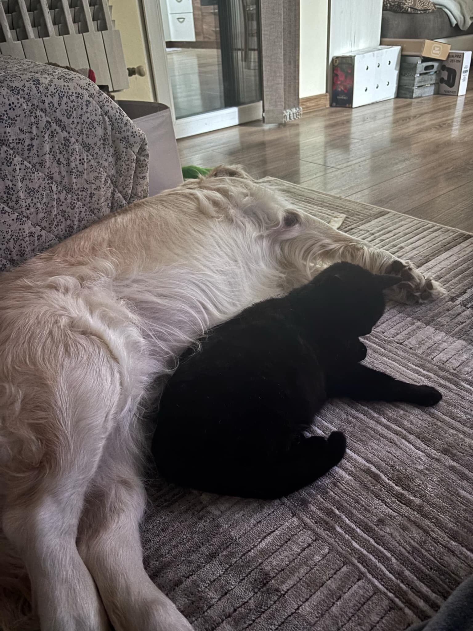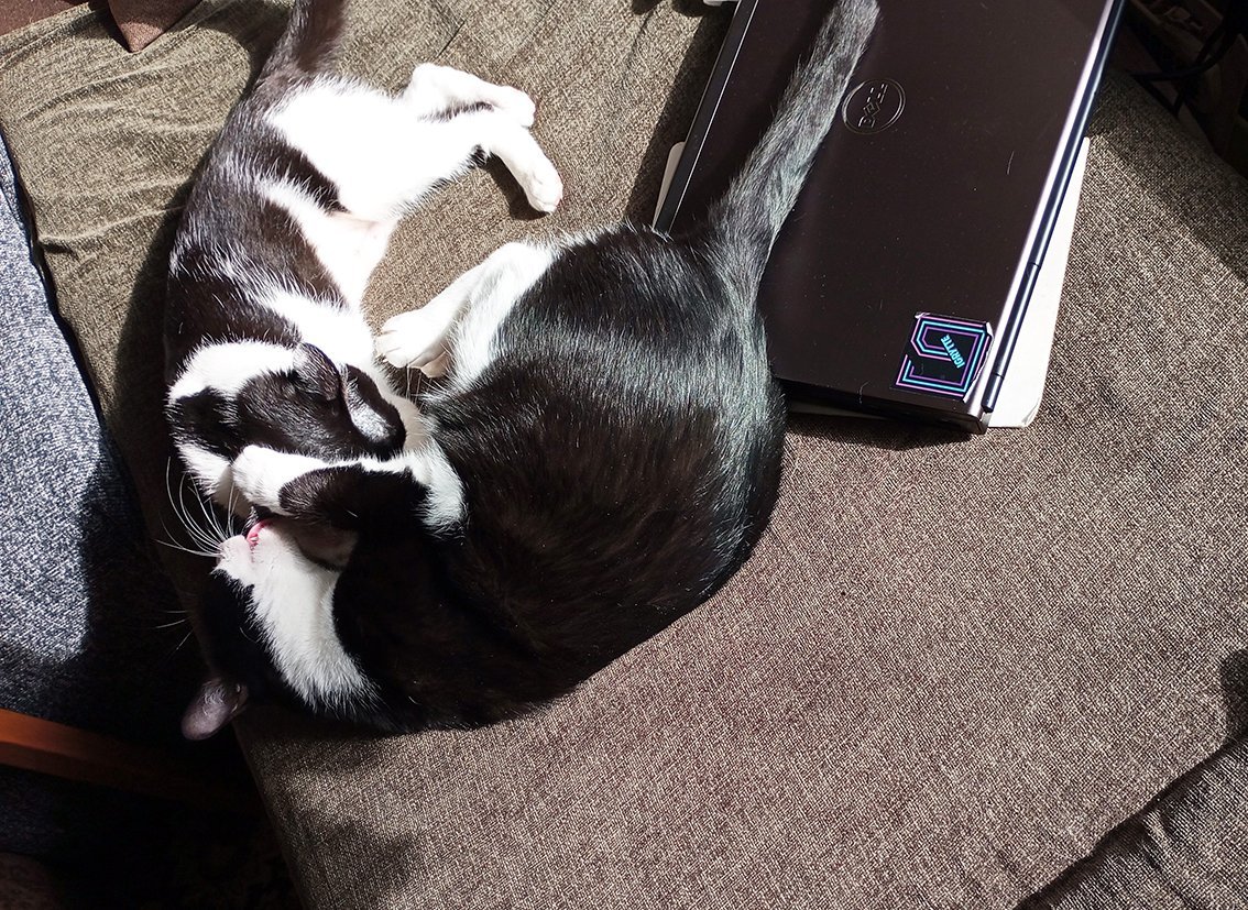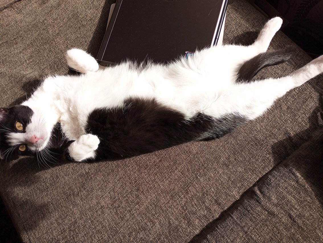 и като разбра, че котката е легнала до него, веднага реши да стане.