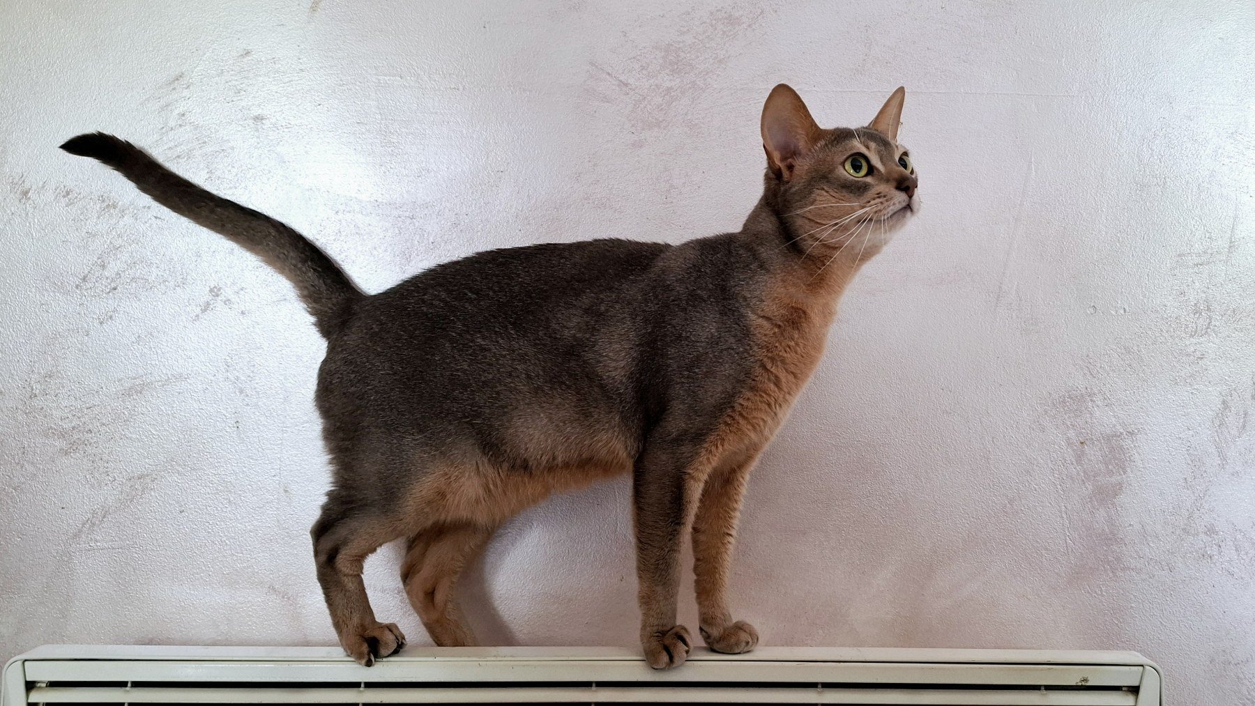 Хванах го в банята. Какво си клечеше в тоалетната, така се изправи и започна да пишка в/у шкафа. И върха на опашката му потрепваше.