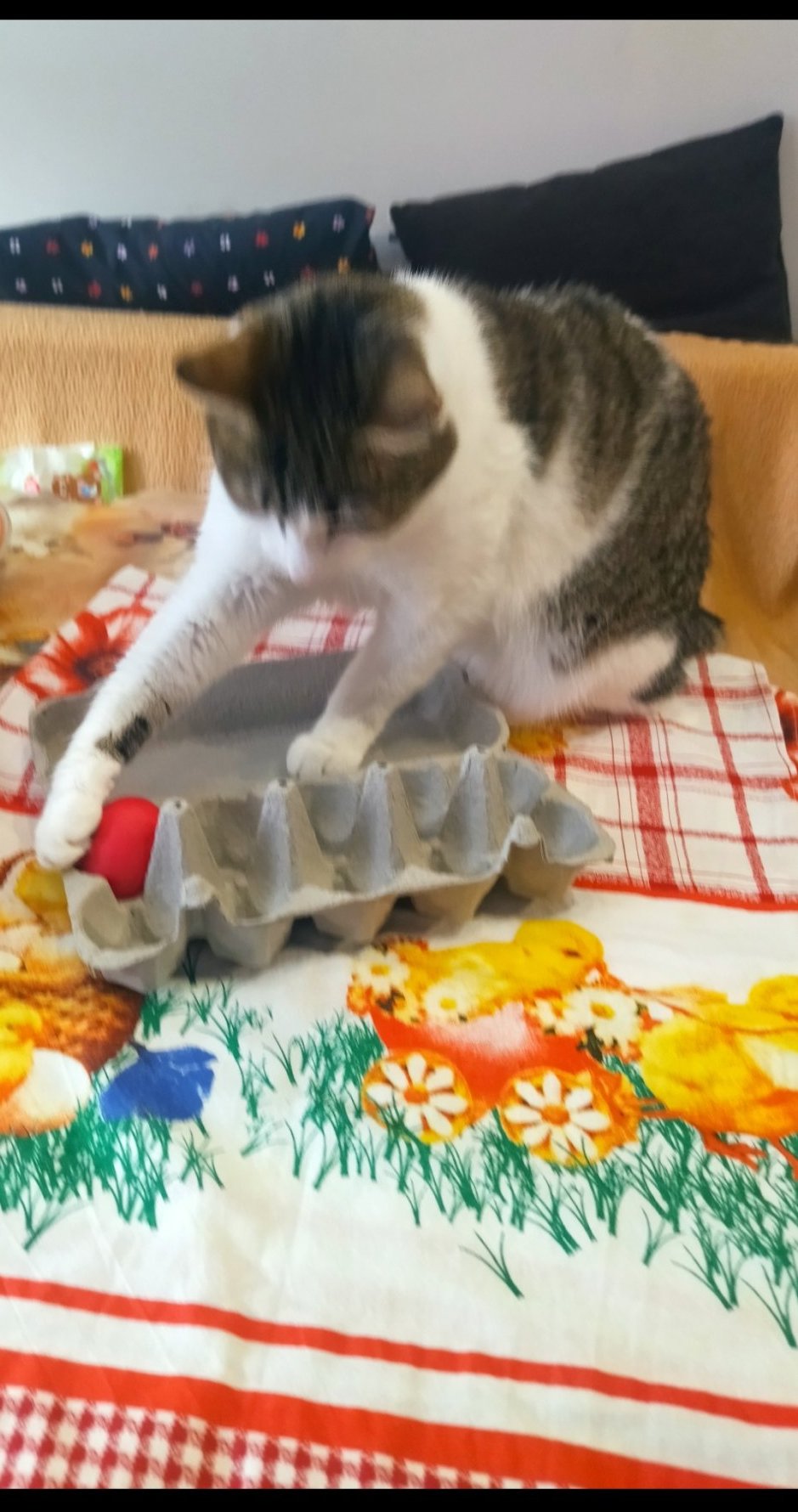 Днес Линошка ни разказа играта с тез яйца, като се започна с корите, та после и яйцата, с всичко иска да играе и това си е!