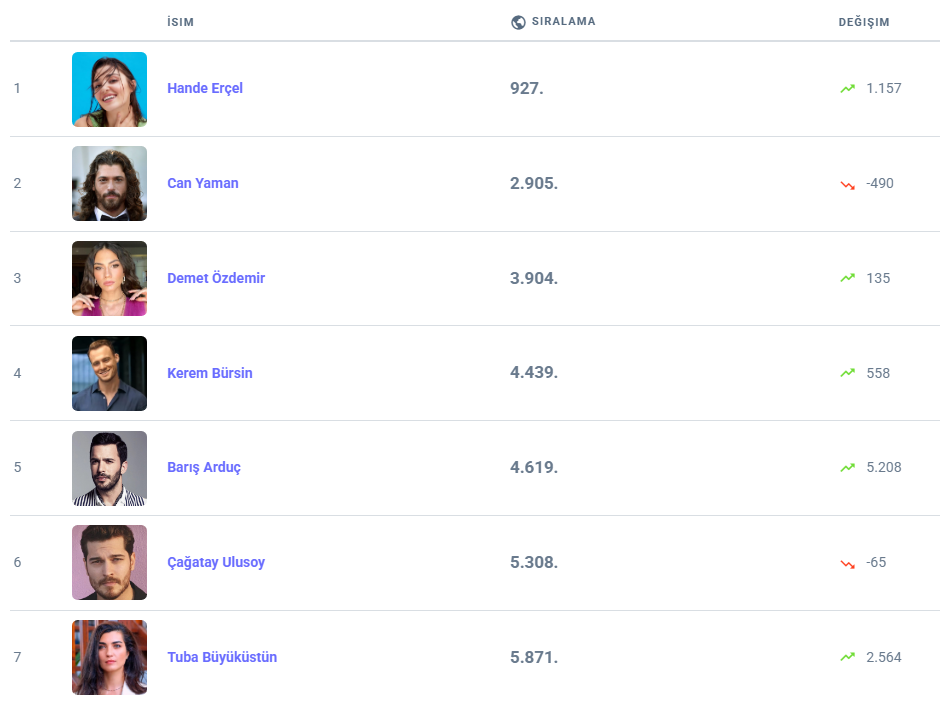 На добри позиции са нашите хора, ако няма преизчисления. Тубата беше бетон ,ама напоследък е по назад. Борко и Ханде са по напред ,щото НФ им пусна общия филм. Тя по принцип Хандето си е редовна в Социопола и е на челни места. Активна е много и социална и се рекламира. Посещава събития и ревюта. Керем също има голяма подкрепа. Джан с Ел Турко и огромният успех също.
