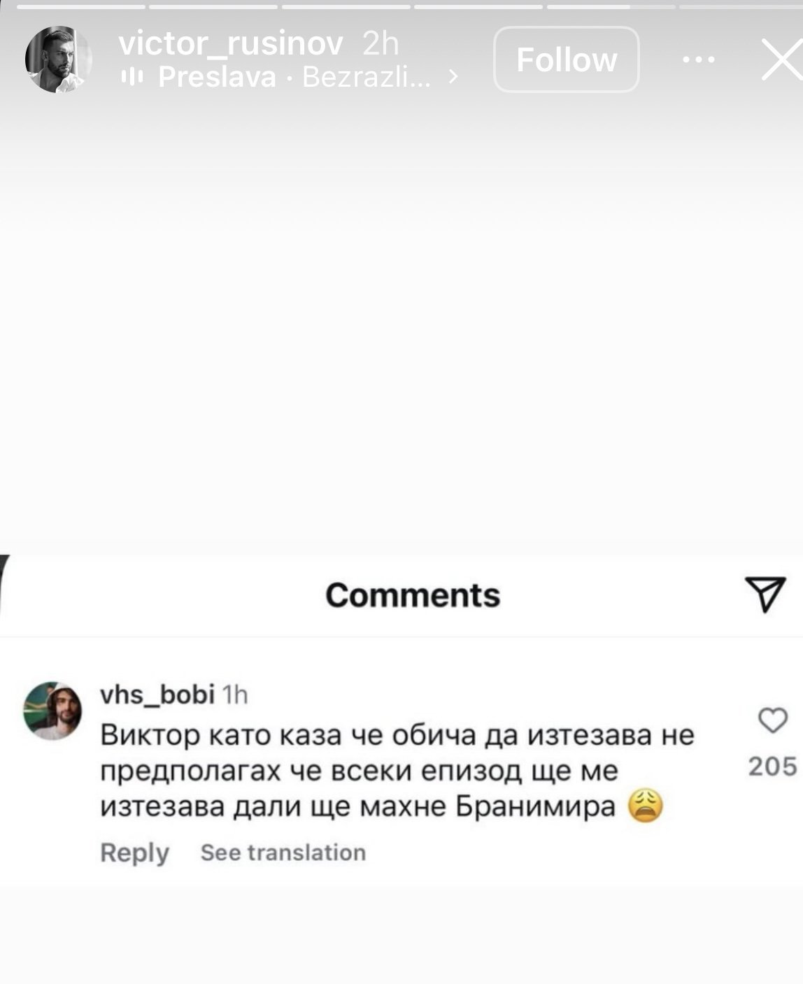 Виктор качил това стори, придружено с откъс от песен на Преслава: