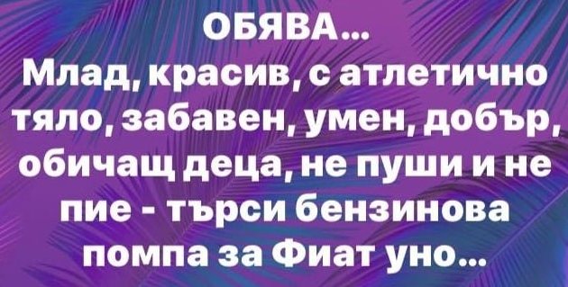 Някога като студенти, с половинката бяхме на лагер в Равда. И лежим си ние на плажа, а непосредствено над нас три или четири девойки от провинцията оживено дискутират лошия си късмет с този студентски лагер. Вечерта, като си спомняхме за тях, половинката много удачно резюмира разговора със следното: