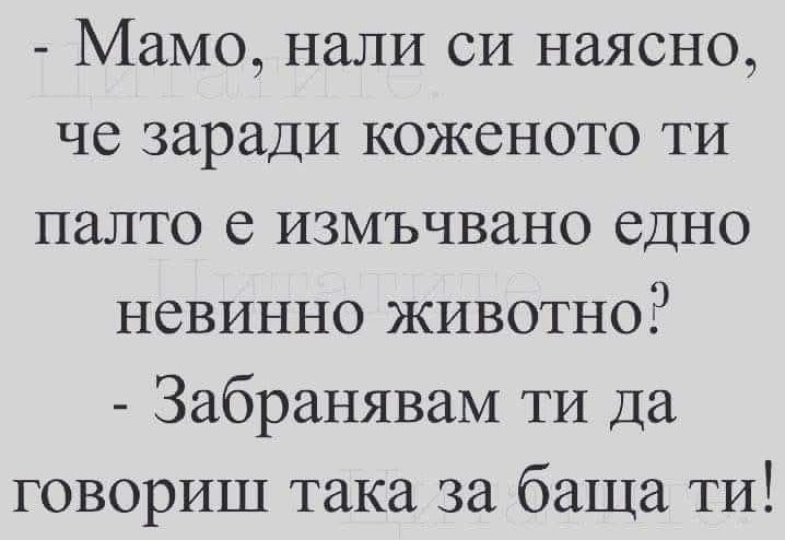 Не се бийте, че ще се изпотите и ще настинете, и тогава майка ви ще ни набие и четиримата!
