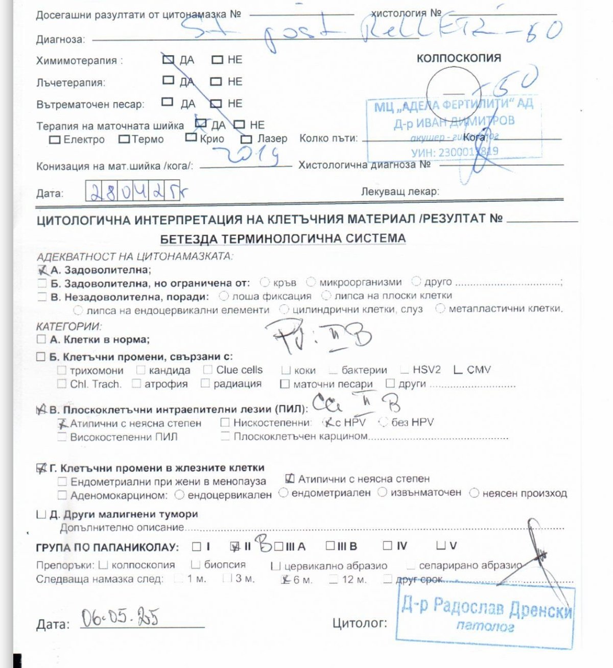 И моята цитонамазка беше 2 група в деня, в който ми взеха и биопсията.