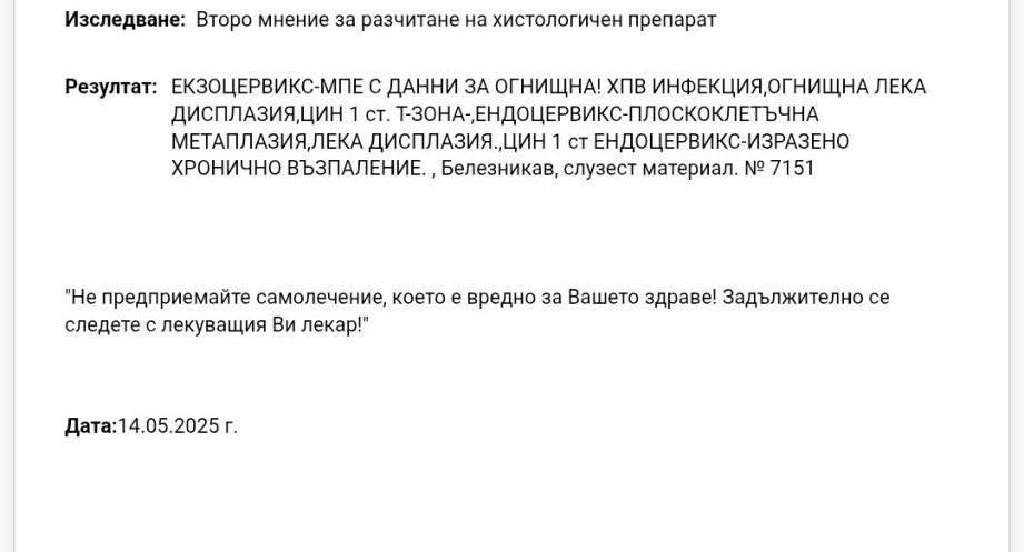 Здрравейте, това са резултати от биопсия, чакам все още теста за хпв.
