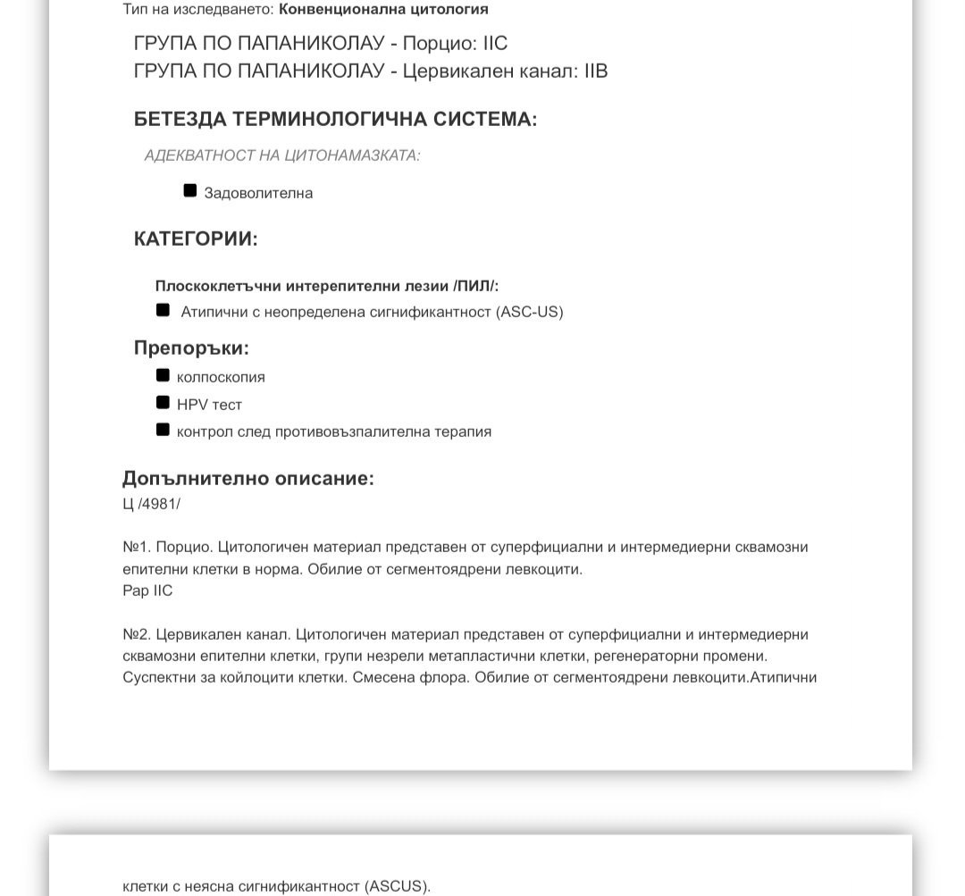 Винаги съм излизала ПАП 1 и ПАП 2А, последно март медец 2024г съм била ПАП2А, октомври 2024 ПАП 1