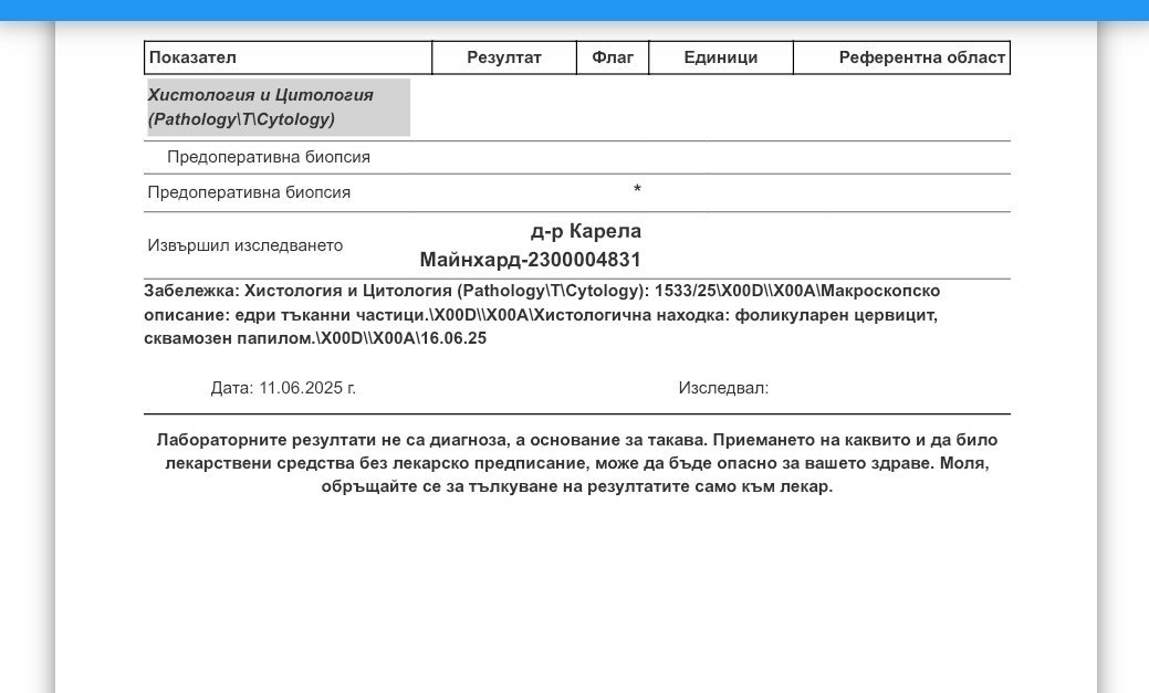 Момичета, в лаборатория Цибалаб верни ли са резултатите? Пише 4 дена за готов резултат (без неделя) за Уреаплазма и Микоплазма в урина. Дадох пробата в петък и днес е готов резултата (отрицателен).