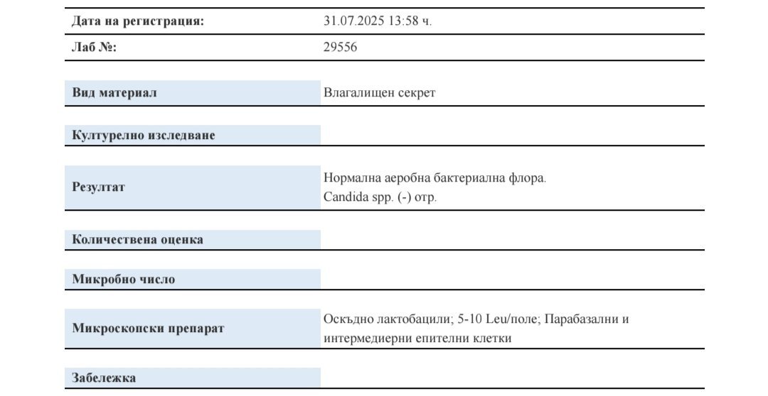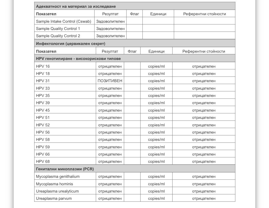 През декември имах положителен резултат за HPV 18. Направихме количествено генотипиране, при което вирусният товар беше 4.1. След проведено лечение, в края на юни повторихме изследването и вирусът беше изчистен – вирусният товар вече беше 0.