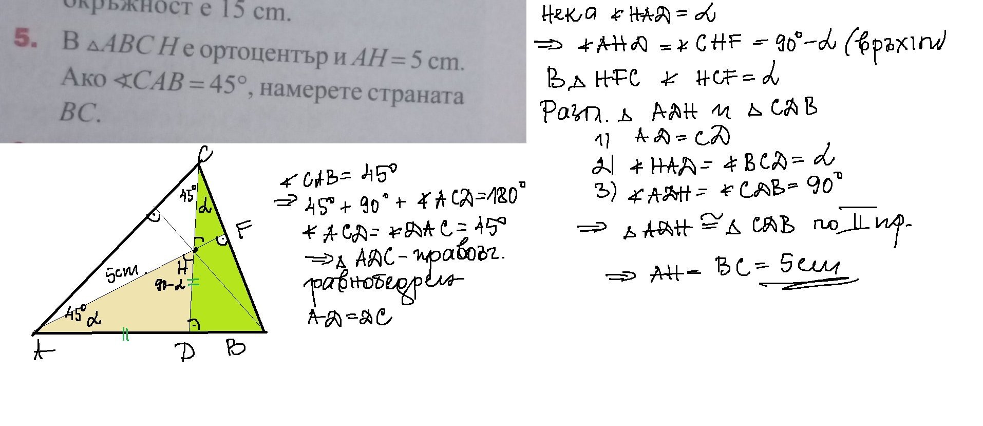 Може ли помощ за задача 5 за 8 клас , в случай, че триъгълникът  е остроъгълен ?