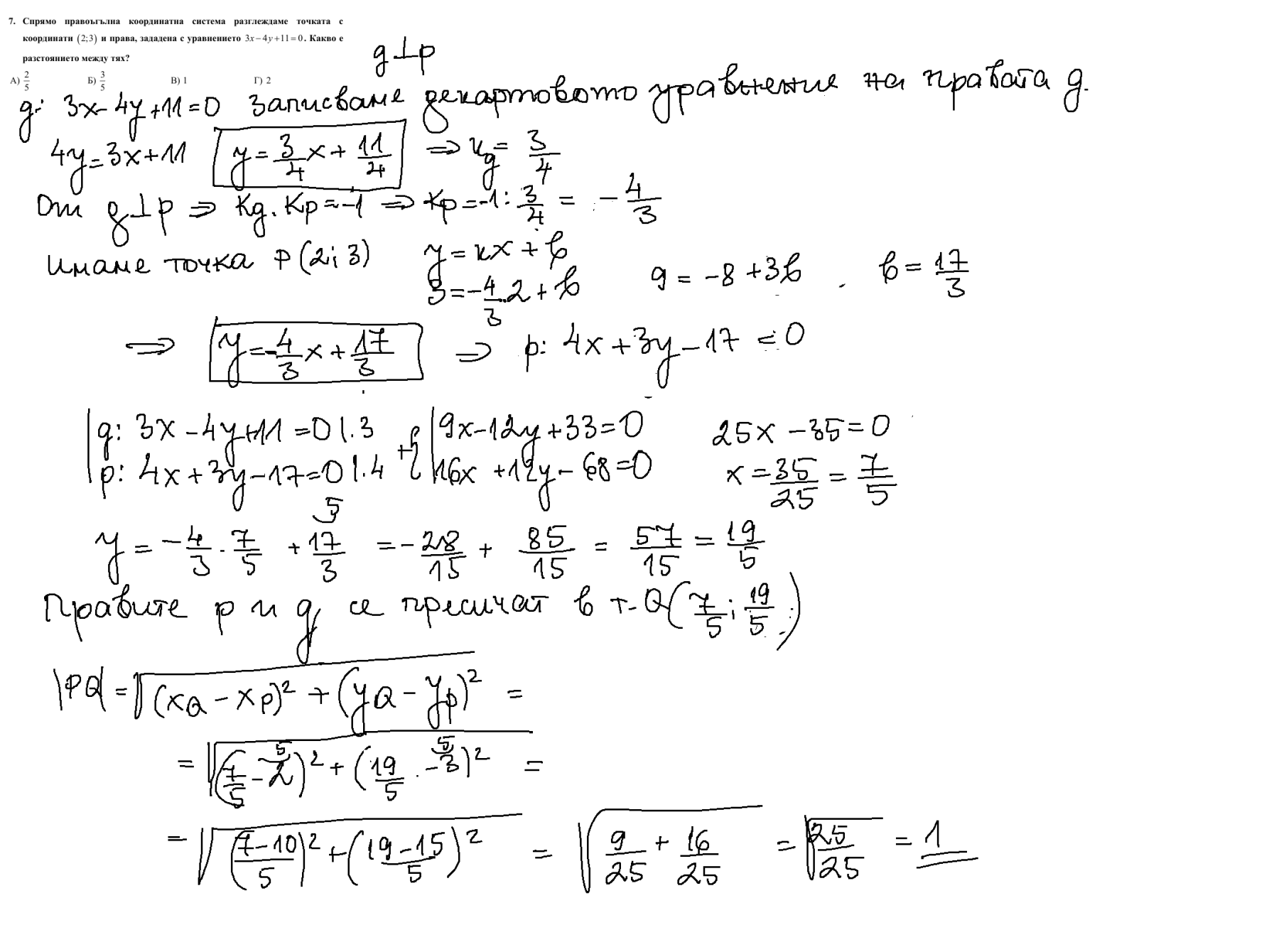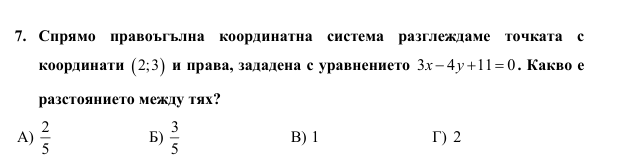 Емма, отговорът е В. Има и директна формула за намирането на разстояние от точка до права.