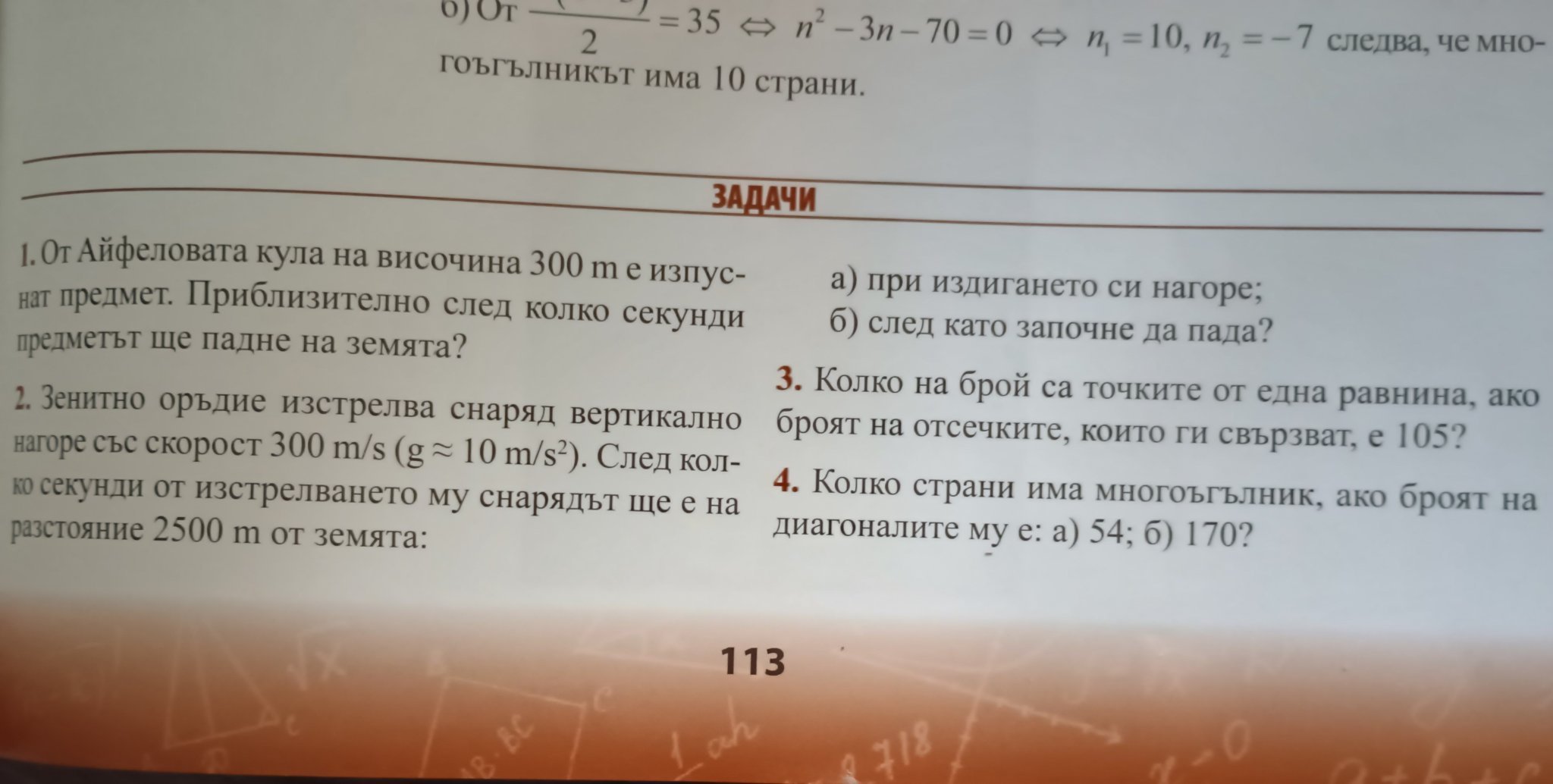 Мама Ру, за 4-та задача се вижда на снимката ти, че в самия учебник е дадена формулата за намиране на броя на диагоналите и с нейна помощ е решена подобна задача.