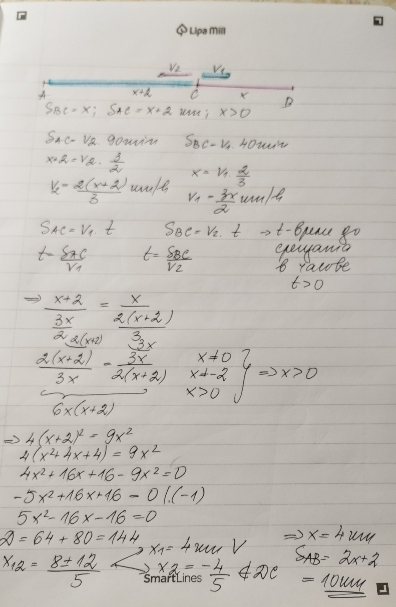 Но S>2км, по условие (S-2>0) и S=4,8km