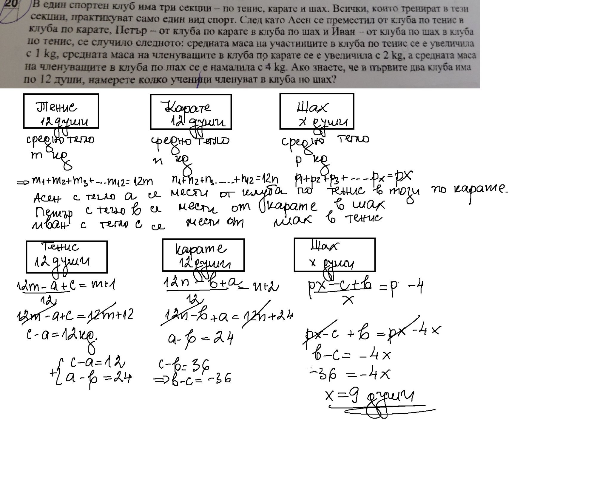 Оправи се проблемът с качването на снимки, та пускам и седмокласната задача, макар да пратих по-рано на дамата решението по мейла ( с една пропусната по невнимание двойка в края).