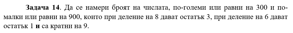 Аз сигурно по-късно съм видяла поста й, та условието си беше/още е това горе, но точно при него изкарвам отговора, че няма такова число  между 300 и 900, което да удовлетворява едновременно и трите условия.