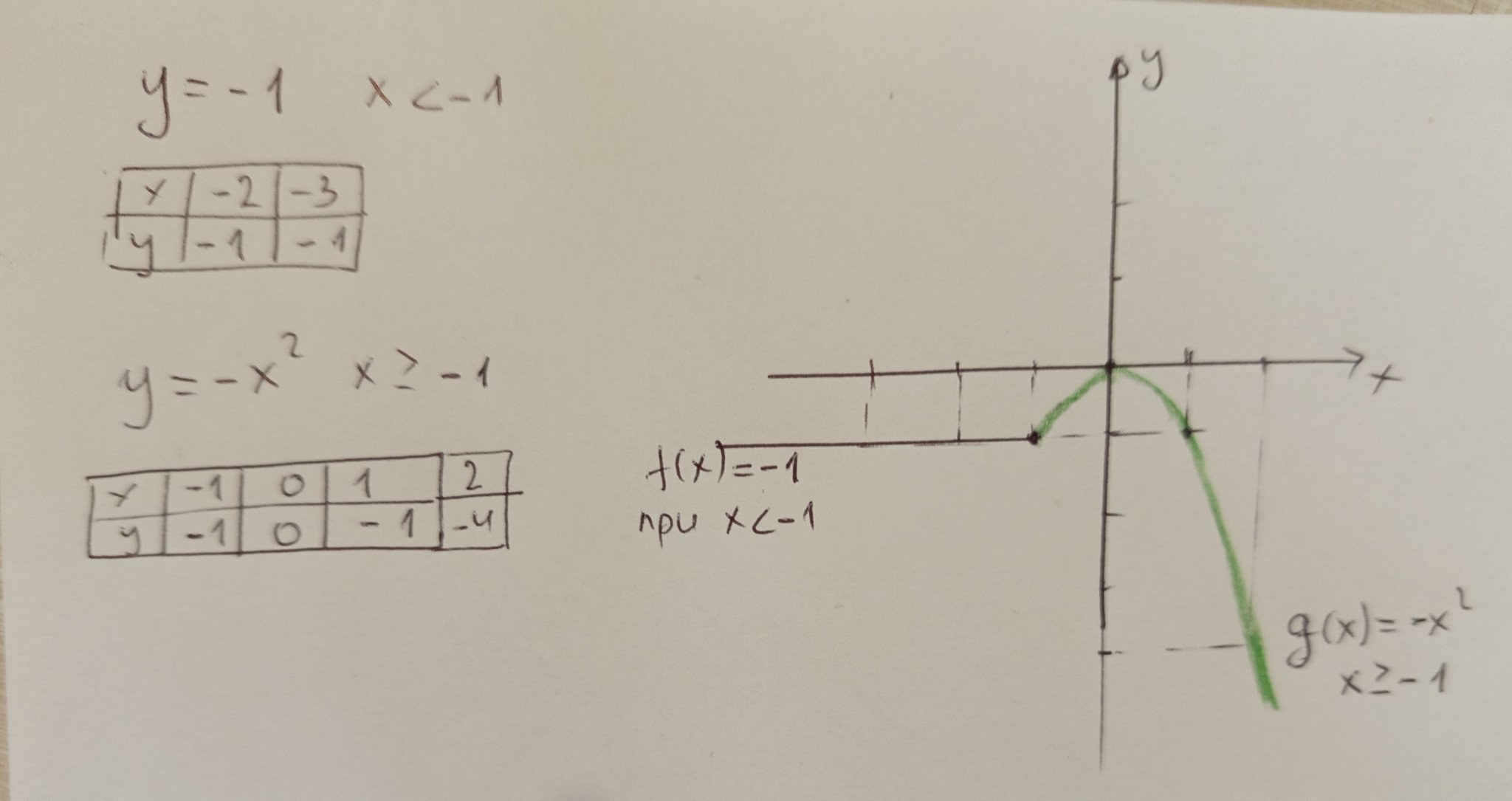 Функцията е константа при х<-1, т.е. права линия... И от х>=-1 си чертаете парабола...