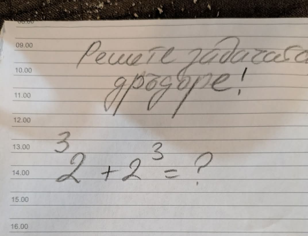 Попадна ми интересен пример във фб, не мога да коментирам и не виждам дадено решение. В коментарите се твърди, че задачата е коректна и има решение, но то не е нито 16, нито 17 каквито предположения има. Авторът/ публикувалият задачата е някой си Милушев.
