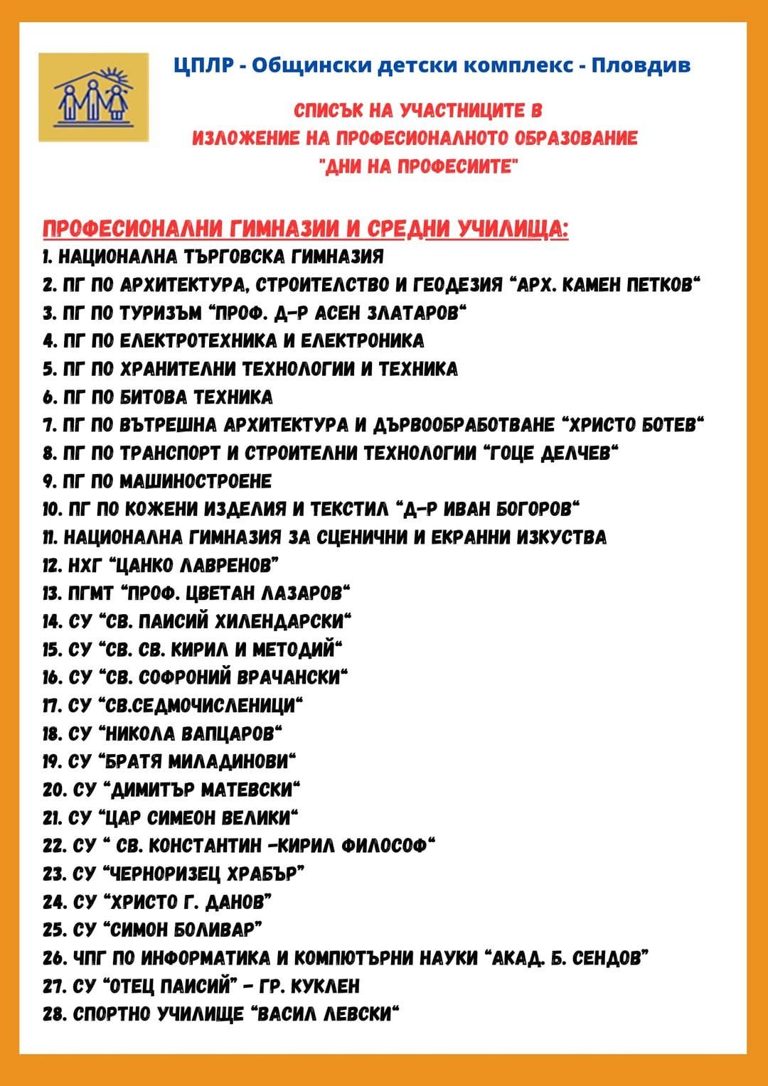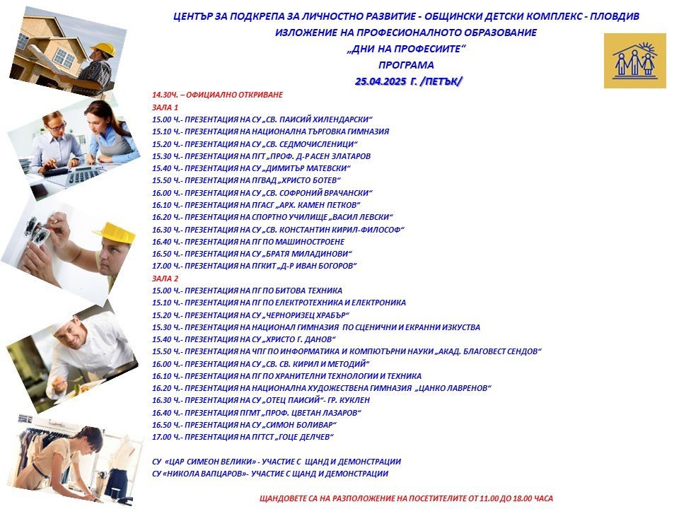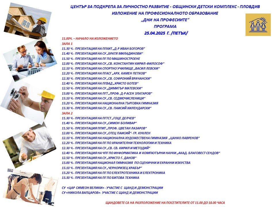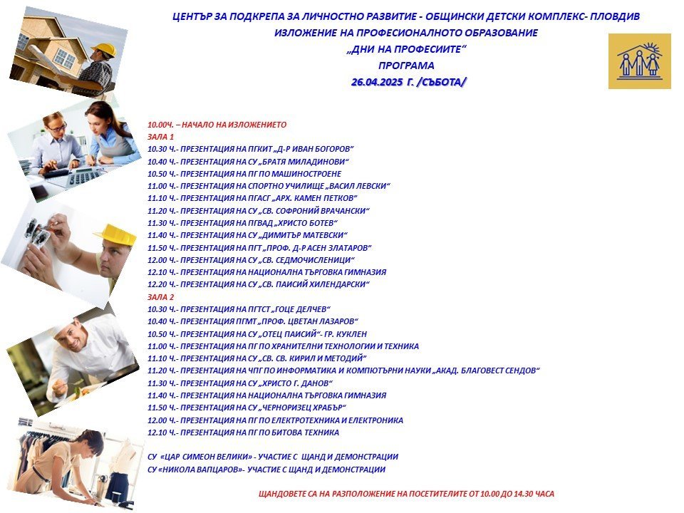 ЦПЛР - ОДК - Пловдив организира за седма година изложение на професионалното образование „Дни на професиите”.