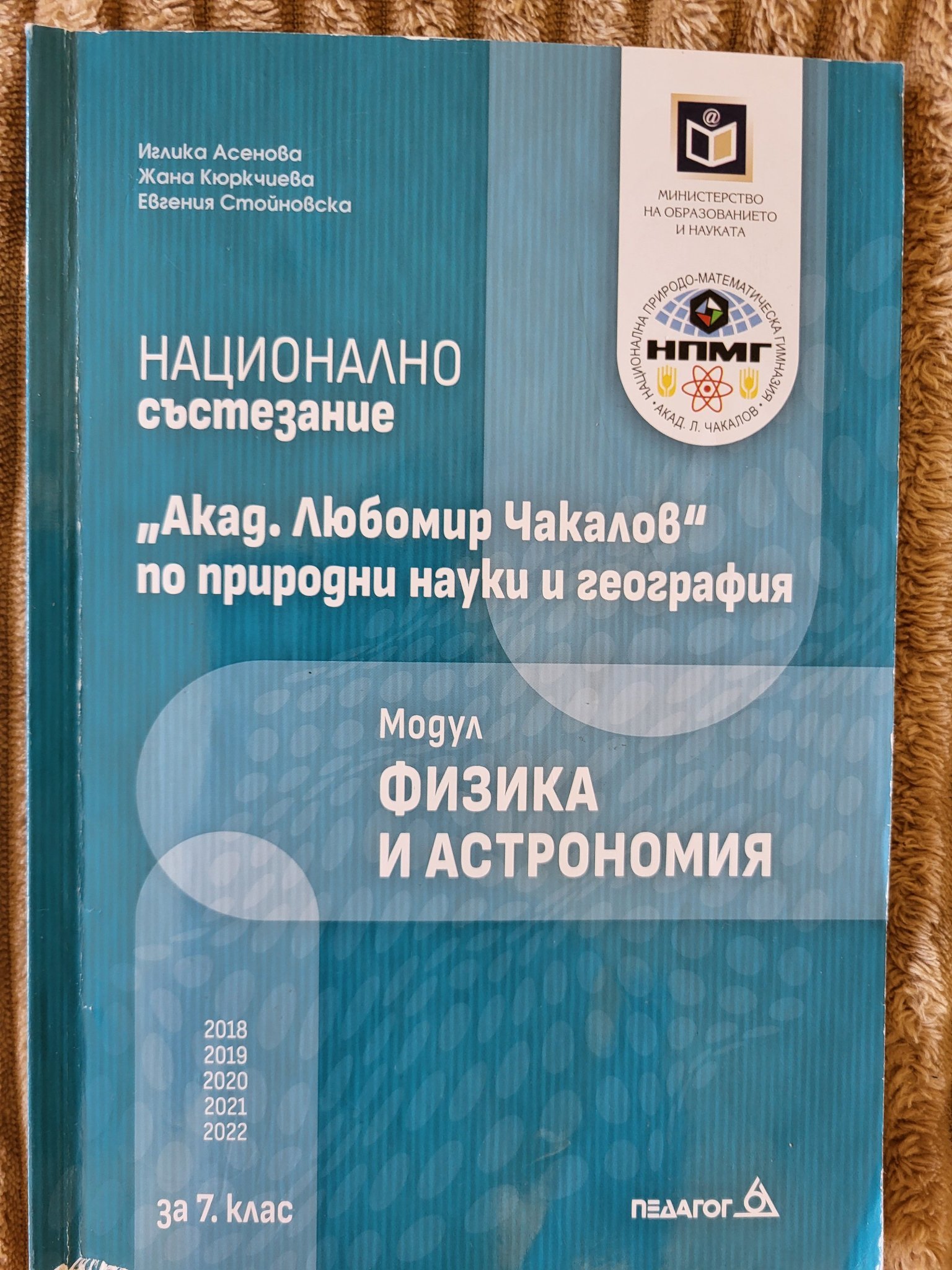 Обаче трябва да намерите задачи и от 5-6клас. За плътност, за скорост. Моята голяма дъщеря не е ходила на състезание, защото тя е от първия випуск с големите промени. Тогава според наредбата не можаха да проведат състезанието. Взимаха олимпиадите и НВО за математиката. Така че на нея взеха резултат от олимпиадата. Там пък за областен кръг влизаха тези задачи. И помня, че решавахме стари олимпиади. Предполагам, че това също ще помогне. За съжаление не знам доколко е адекватен съвета ми, защото не следя подготовката по физика.