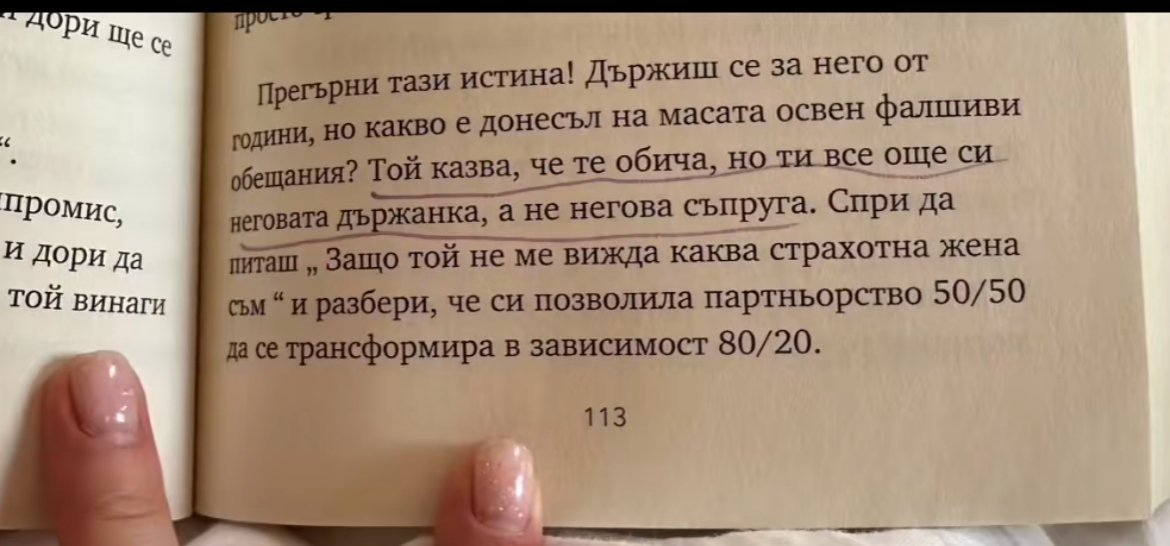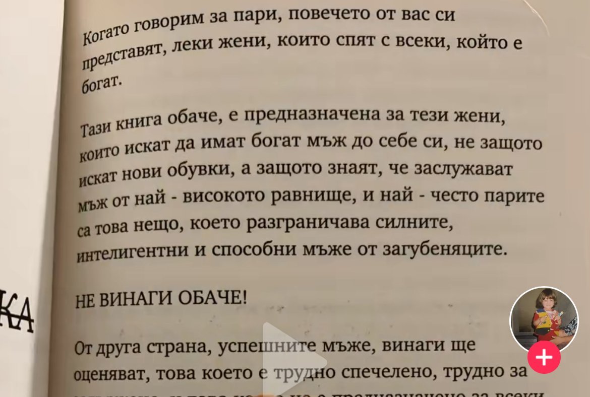 Ето някакви откъси от книгата да добиете представа, едно момиче в тик ток я обсъждаше. Ами вижте какви големи разстояния има, колко голям шрифт явно за да изглежда по-обемна. И цитати от Фейсбук, ма то голяма писателка. Жалко че сега толкова заблудени момичета ще се юрнат да я купуват, тя и затова е влязла вътре и имат някакви договорки и с Мартин и с продуцентите.