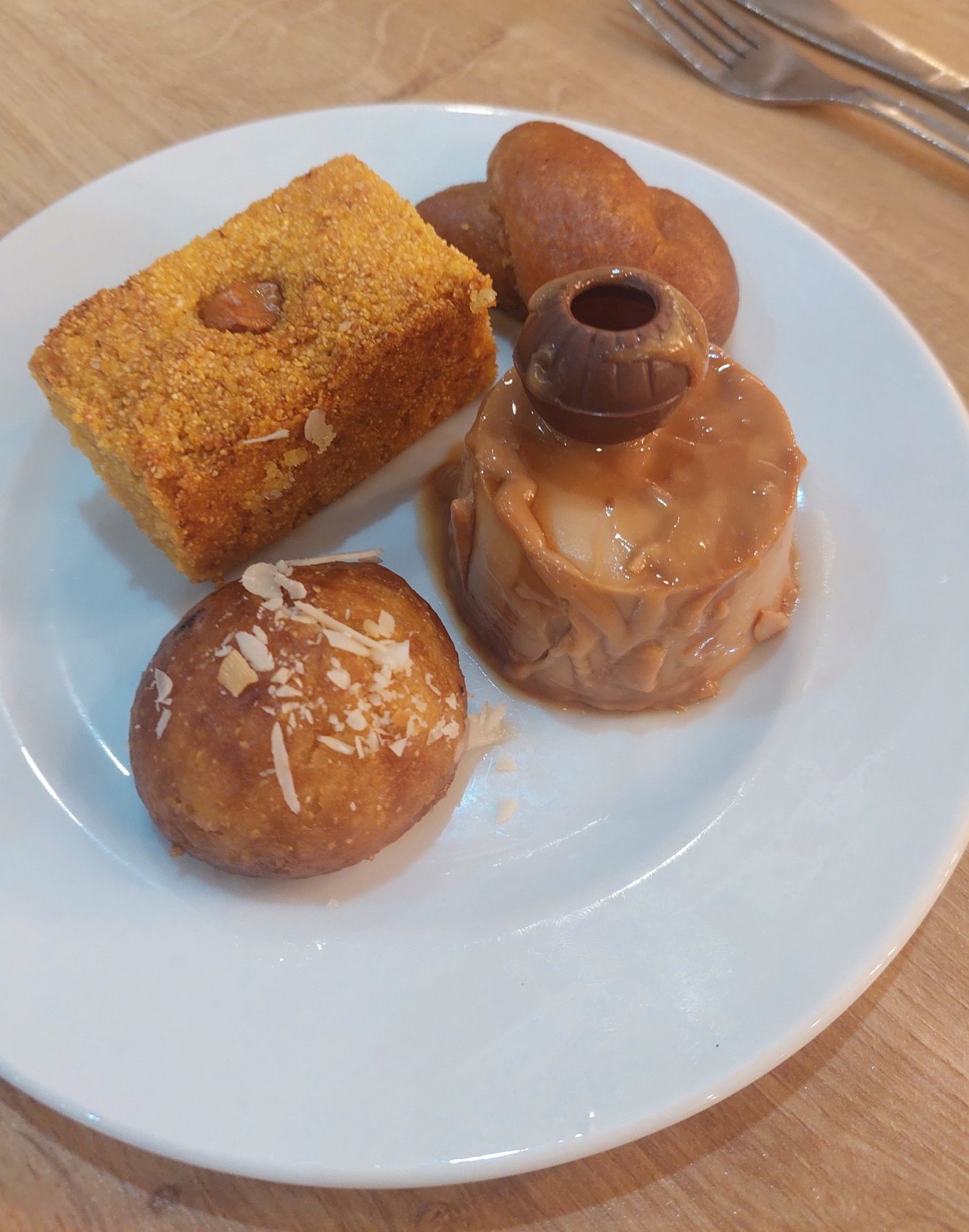 По темата за десертите в хотел TUI Сунео Серенити Бей - до Царево мога да кажа, че също повечето бяха точно от масовите петифурки с кремчета и ванилени кремчета, но в различните дни сервираха и кадаиф, баклавички, толумбички,  жилирани плодови салати, фунийки с крем, саралии, реванета, кексове, крем карамел и крем брюле. Като цяло избягвам да хапвам сладки неща, въпреки че много обичам, но все пак имаше дни, в които опитах някои сладкиши. Липсваше ми сладоледа в ресторанта, който до преди две години го имаше на обяд и вечеря. Последните две години се предлага само на снек бара от 12 до 18 часа.