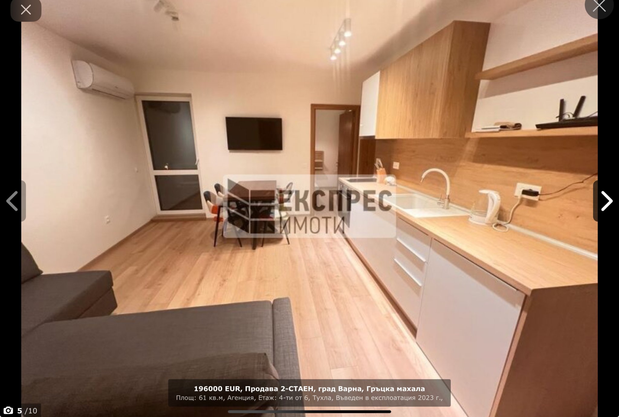 Всъщност ще добавя коментар. Това е 2 стаен ново строителство в "престижната" гръцка махала сигурно не повече от 40 квадрата чисто за 200,000 евро. Тази снимка така са я направили че да изглежда малко по- дълго помещението но реално е 3 метра широко и не повече от 5 метра дълго. Естествено има само една врата към балкона без прозорци. И това беше една от първите обяви дето ми попаднаха за по- малко от минута търсене
