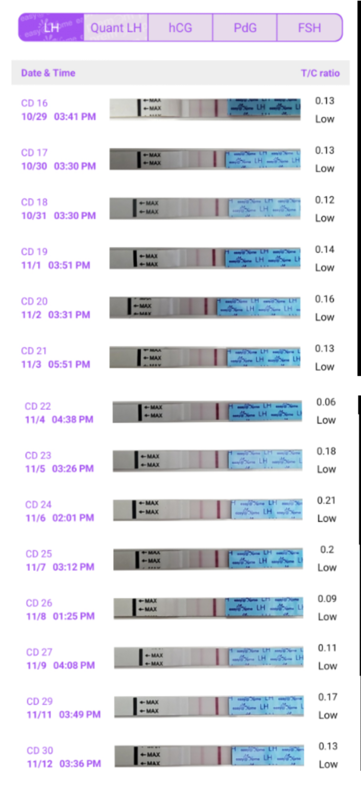 ПРМ на 15.10, имам СПКЯ и нередовен МЦ (35-60дни). Приложението premom ми показва, че е имало овулация на 08.11, но е явно, че пик на ЛХ не е отчетен. Сигурно ли е, че не е имало овулация този месец и дали има смисъл да продължавам с тестовете. 🤷‍♀️