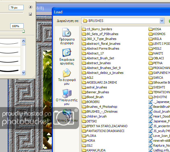 От отвореният прозорец иди в папката където се намира четката ,която ти е необходима в момента и кликни на нея ,за да я заредиш. За по=лесно аз съм групирала четките /т.е опитвам с е да го направя като имам време/