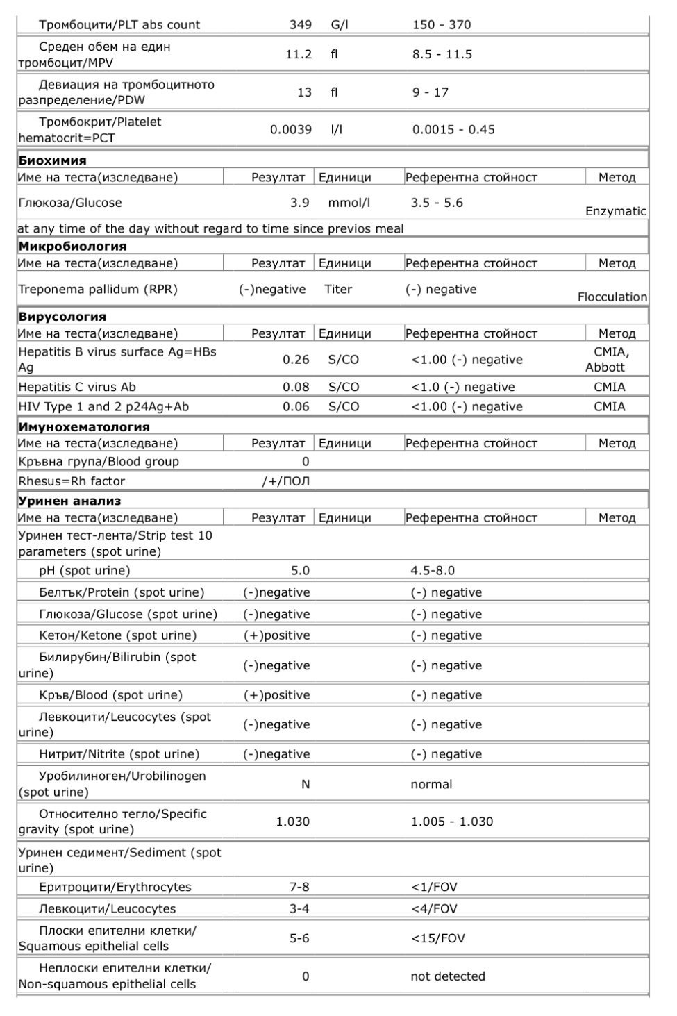Аз бях с кръв, кетони и еритроцити в урината. Еритроцитите бяха малко, лекаря каза, че вероятно са песачинки, ако нямам болка и парене. Пусках и стериона, всичко е ОК. Кетоните, може да са ако повръщате често, аз примерно повръщах и реших, че е от това. АГ не им обърна внимание.