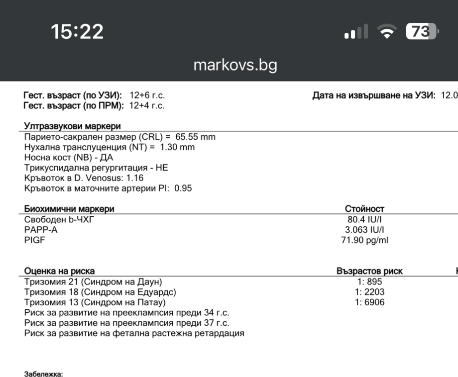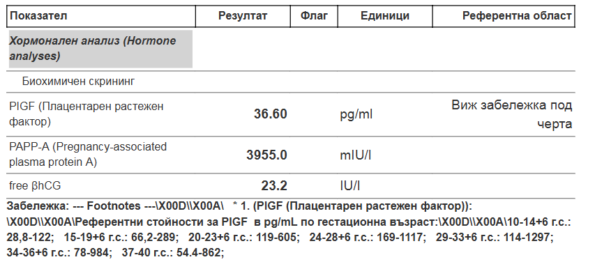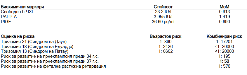 Вследствие на стойностите на тези граници, се изчислява рискът от синдроми. Трябва да ви го разчете АГ или генетик, ако няма съотношение.