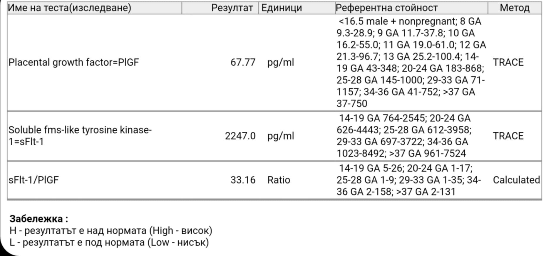Ще съм благодарна от помощ в разчитането на резултатите от изследването за прееклампсия. Правих ги когато бях в 17г.с, в лаборатория Рамус.