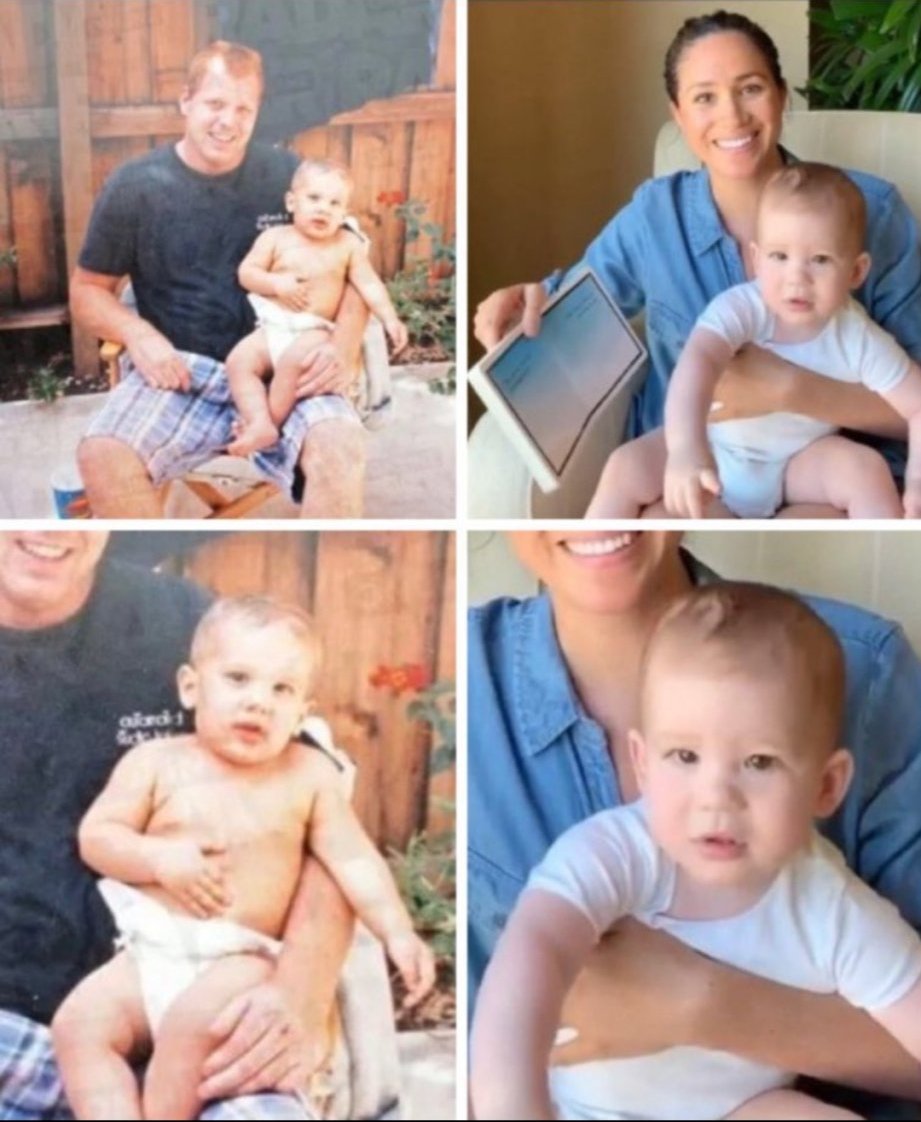 Съжалавам, за мен приликата Даяна-Уилям е неуловима в този момент. Имат сини очи и сходни носове и дотам. Нито форма на лице, нито усмивка. Не виждам и между Даяна и Шарлот - тя е повече на Бети и нейния род (прилича на Сара Чато). Между снимката на Лилибет и Томас М също не виждам нищо общо, при Арчи повече има прилика с показаното дете (предполагам полубрата на Мегън?)