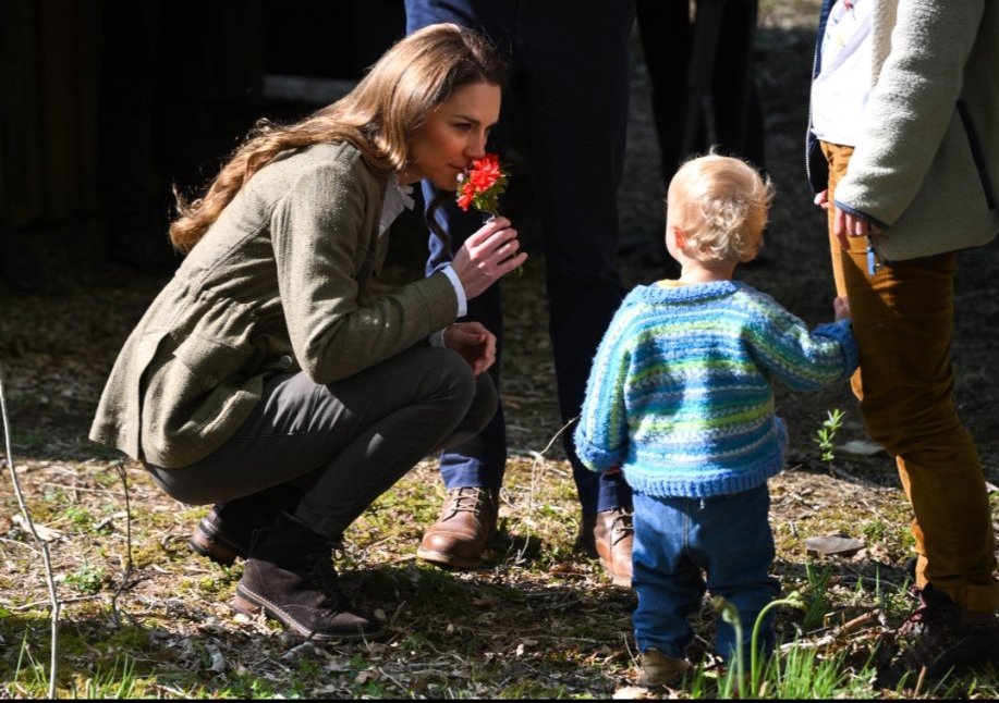 Страхотна снимка! Всички снимки от това посещение са невероятни, от тях струи топлина, непринуденост и любов. Кейт както винаги е неповторима в стила си, тази жена умее да изглежда страхотно без супер скъпи дрехи, в ежедневен, спортен или елегантен стил. Съчетанието на кафяво и синьо е класика, синята риза освежава иначе скучното модерно кафяво.