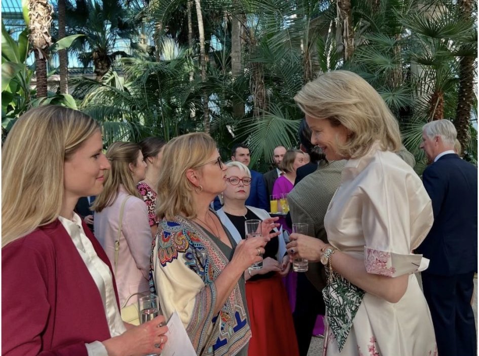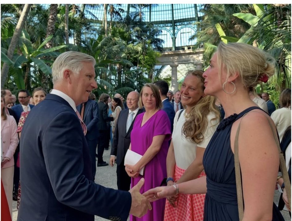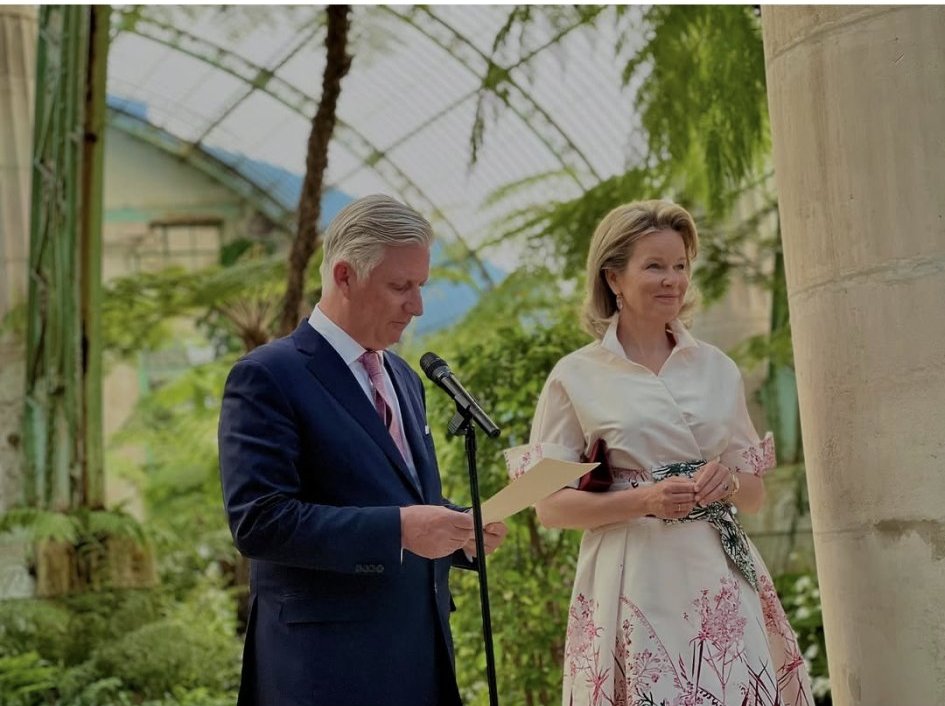Филип и Матилде  приемат белгийски и международни журналисти в кралското имение Лакен.