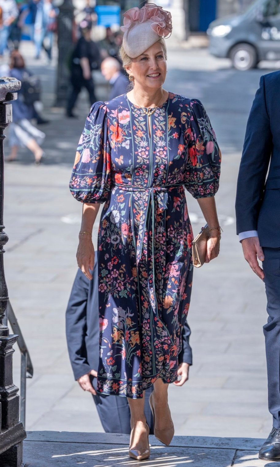 На мен Софи много ми харесва с тази рокля, свежите цветя на тъмно син фон са много красиви и пролетни, а шапчицата е елегантна и завършва чудесно тоалета. Всъщност харесвам всички тоалети от последната седмица на Софи.