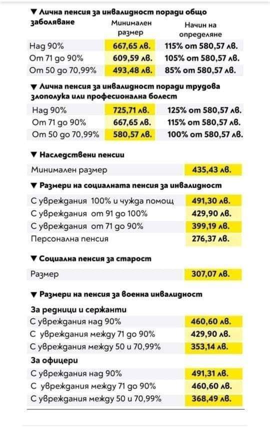 Размерът на пенсията за инвалидност зависи първо от процентите (групата), определени в ЕР на ТЕЛК. При 5 години стаж има минимална сума: