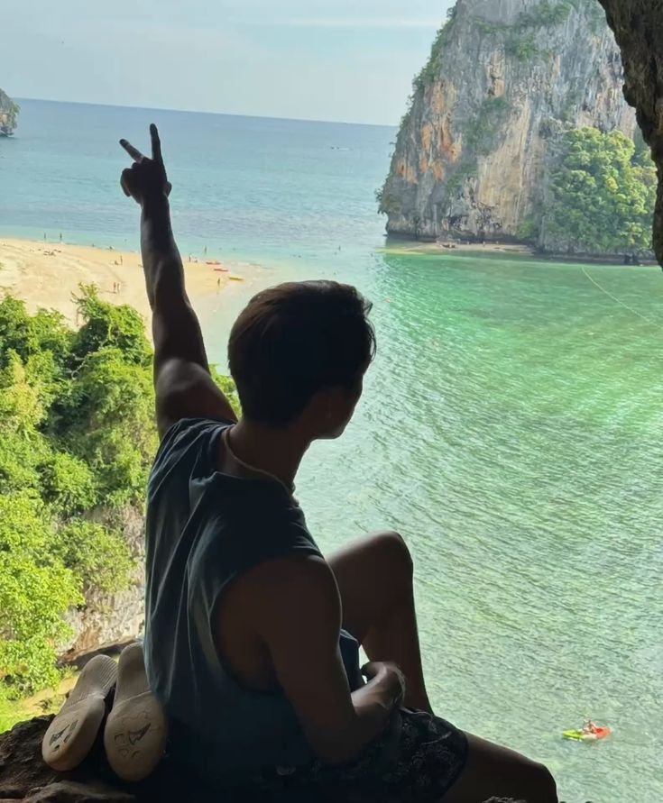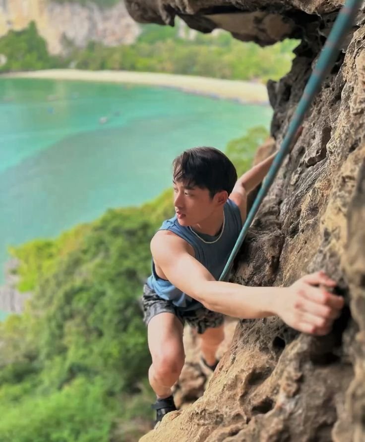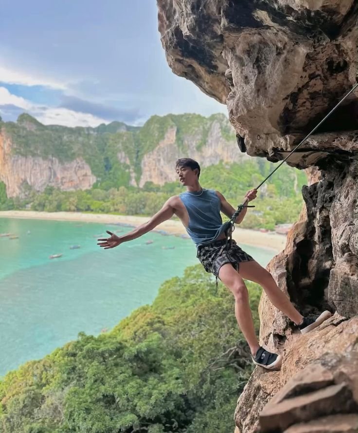 Аз взимам този тай бивш плувец и настоящ артист, за да ходим да се катерим на такива хубави места и да крещим в подкрепа на Леон Маршан. 🏊🏼‍♂️🧗🏿‍♂️