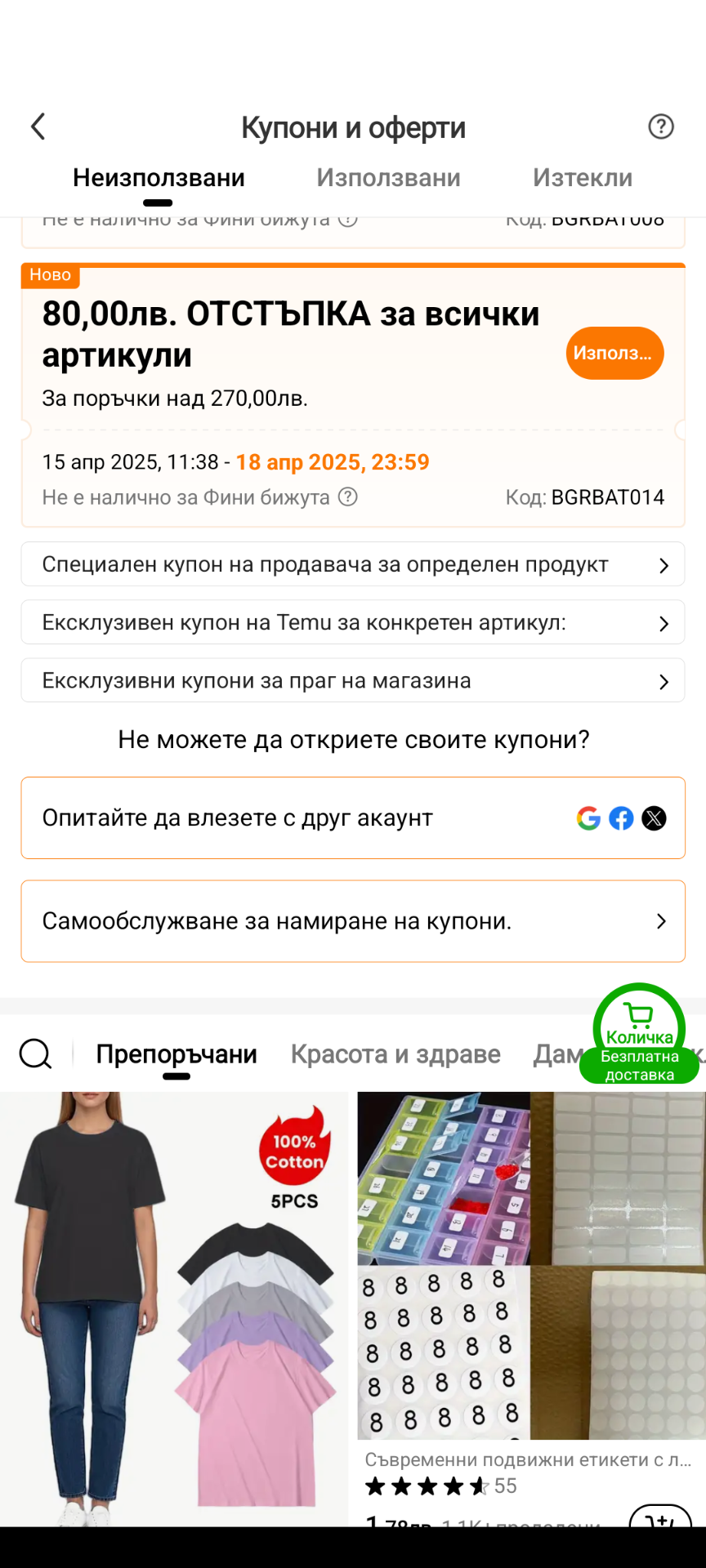 Купоните са като предишните, ще дам екранни снимки. Двата артикула, които поръчах, са на стойност около 12 лв. общо.