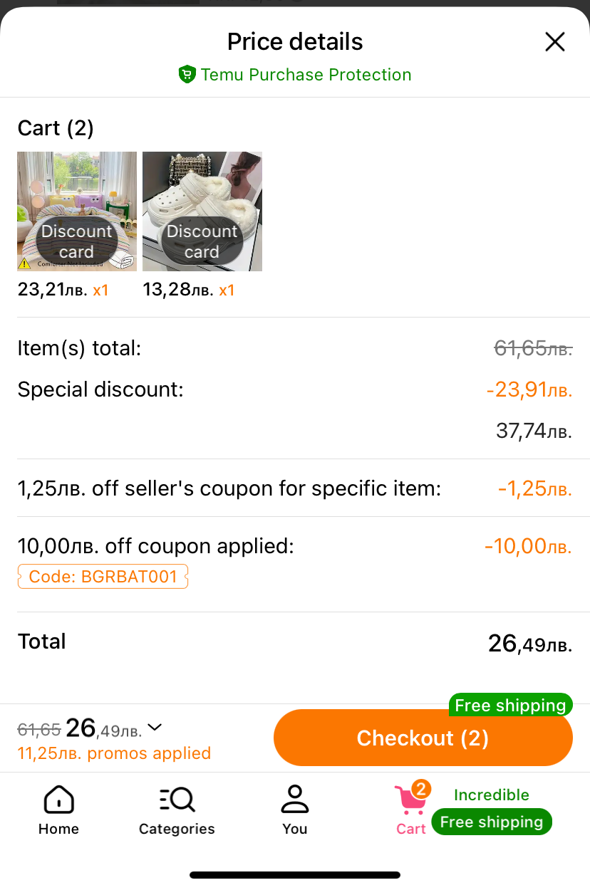 При мен има опция да използвам два продукта на намаление и да ги комбинирам с купон.
