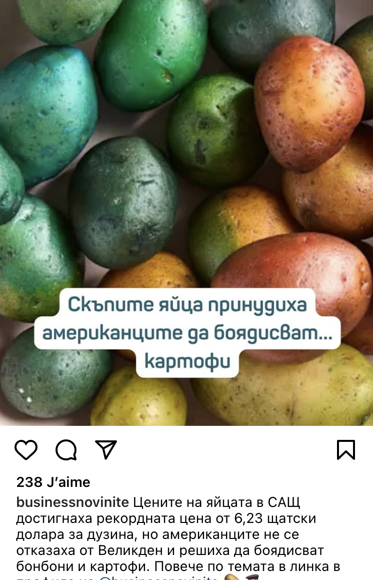 Мда, понеже боядисват картофи вместо яйца, с умиление си спомнят какъв е бил Великден по Обамово време🙈😇