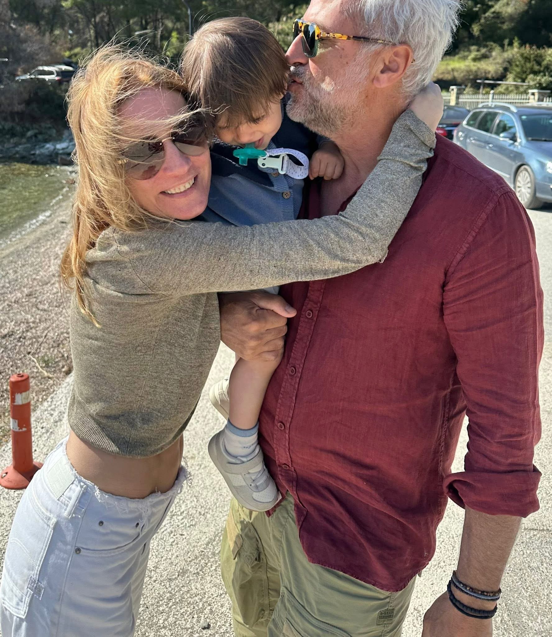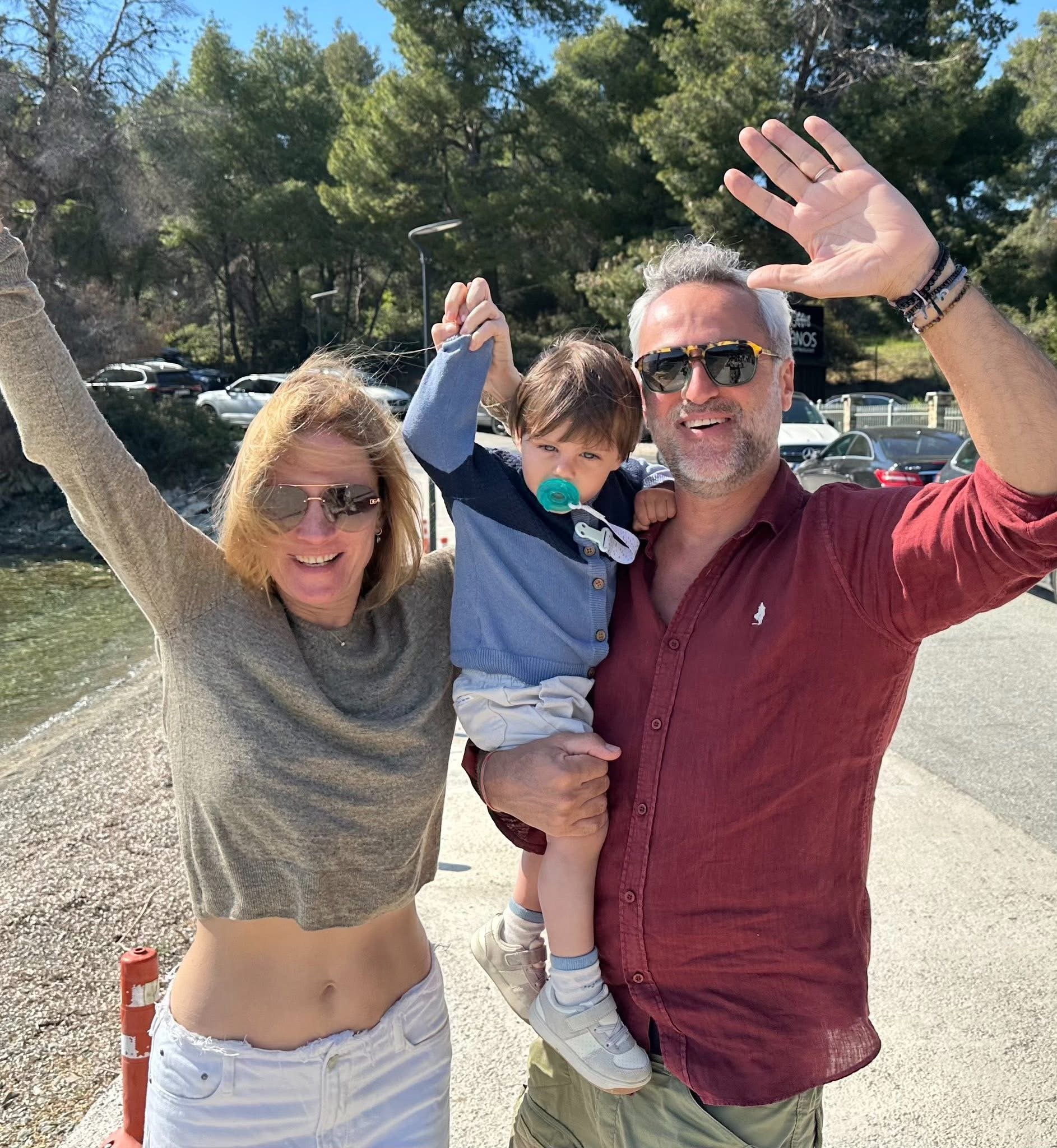 Теодора Духовникова със съпруга си и детенцето на което са били кръстници.
