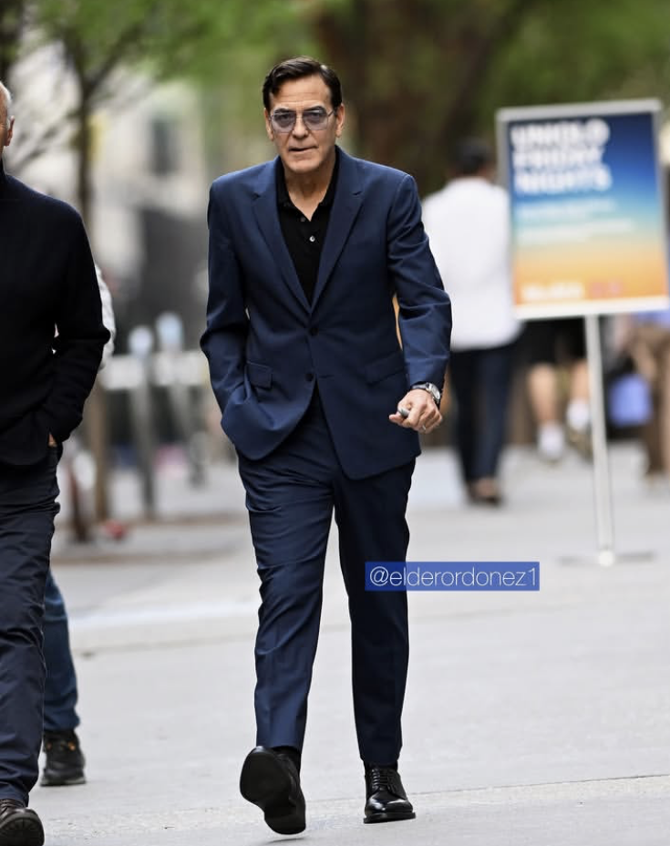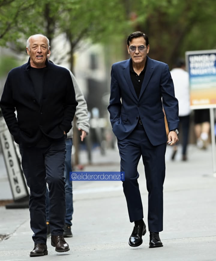 Джордж Клуни из улиците на Ню Йорк, снима филм. Жена му не можела да го гледа в този вид, боядисаната коса го карала да изглежда…стар.