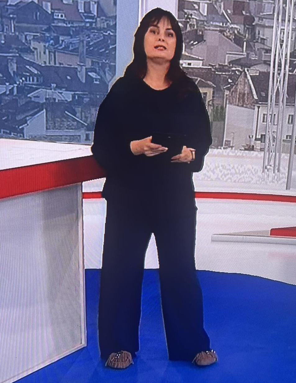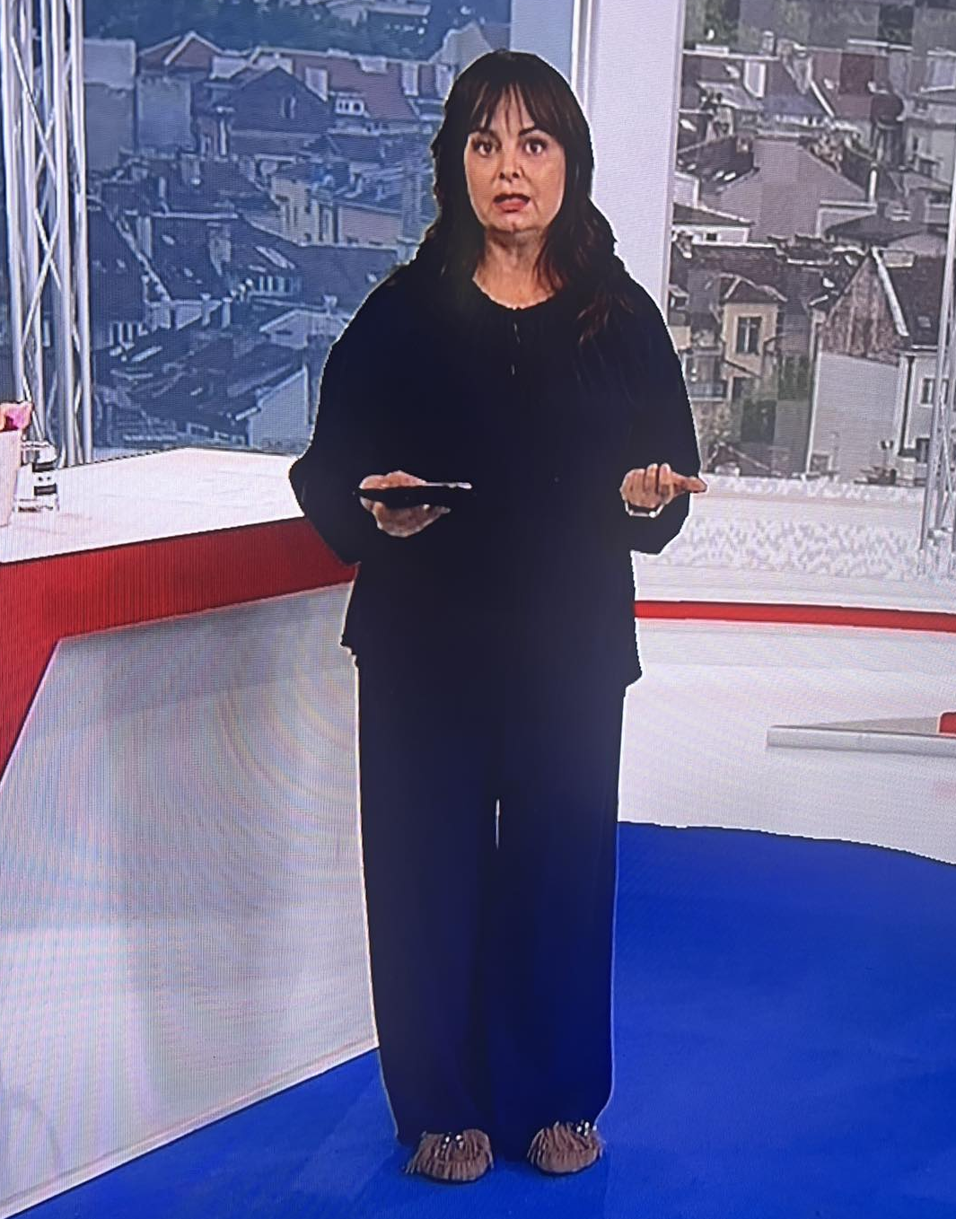 Явно в БНТ си носят личните дрехи и тя днес е отишла на работа с домашния екип.