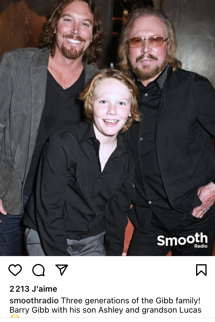 Ето три поколения Гиб - Бари Гиб със сина и внука си. Бари единствен остана от всичките (пет) братя Гиб и Bee Gees.
